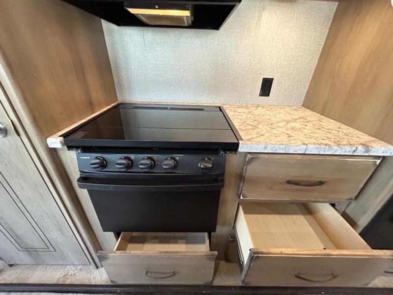 Like all Grand Design products, the Transcend travel trailer is no different when it comes to functionality and quality construction. The Transcend features a Strong Wall aluminum exterior that includes a satin metal exterior skin that is 25% thicker than the competitors for a more durable and better-looking finish. It also includes a fully enclosed and heated underbelly. The roof is double insulated to keep you warm in the cooler climates and cooler in the summer heat. You will also enjoy upgraded residential furniture, solid wood cabinet doors, a residential heat system, E-Z Lift bed storage, and panoramic windows so that the view outside can easily be part of your interior when opened. Make a great choice and select any Grand Design Transcend for your weekend adventure headquarters!