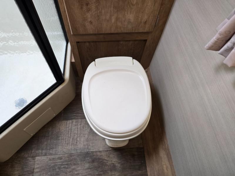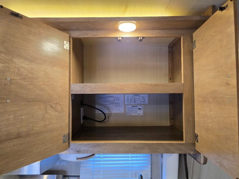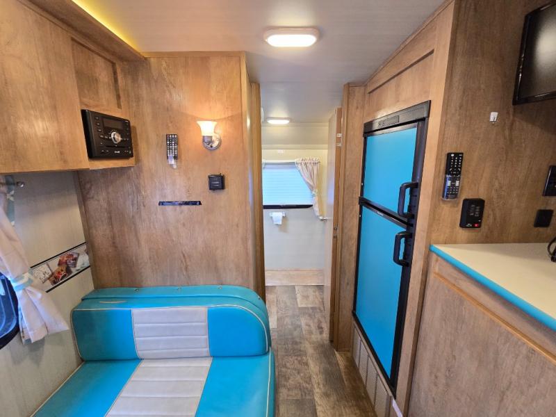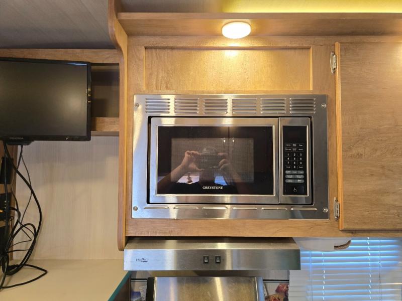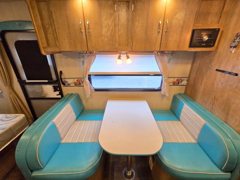 Everywhere you look in this Vintage Cruiser you will see the view you chose for your camp outing as there are windows in every space, even the bathroom. Between tons of natural light, and the LED lighting throughout, you will find the inside fresh and bright even on a cloudy day. Every morning you can wake to the sights and sounds of nature after a great night's sleep on the queen bed provided, then head to a spacious rear bath and get ready for your new day. The skylight above the shower will bring in more light to wake you along with the smells of breakfast being made just outside the door. There is a TV mount opposite the dinette if you choose to add an HDTV for enjoyment, plus you will also find multiple USB locations both inside and out handy for keeping all of your electronics charged as well.