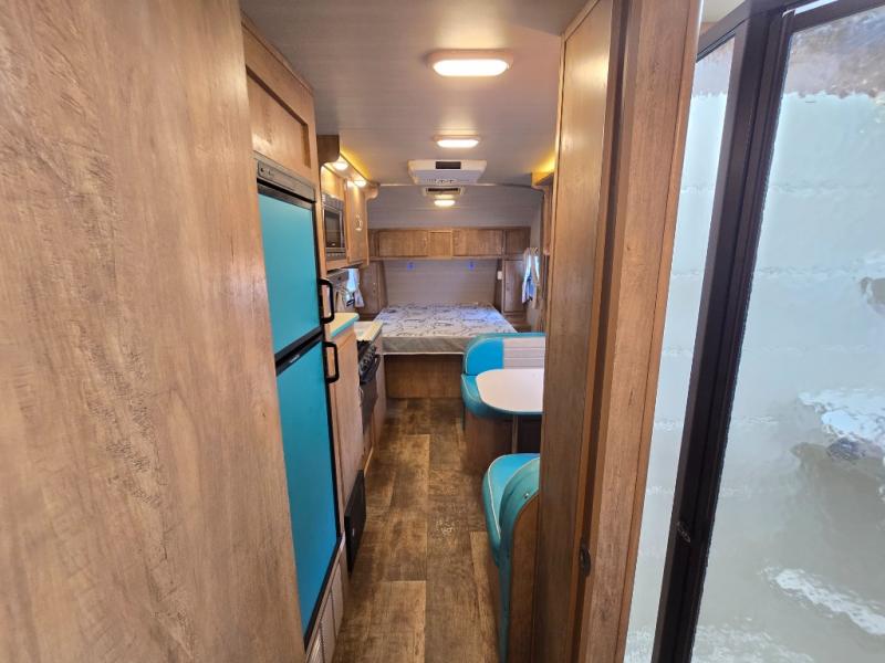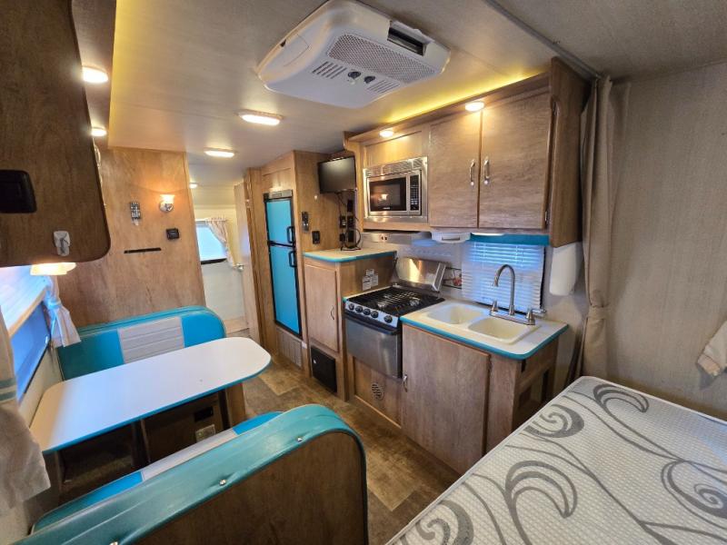 Any Vintage Cruiser model will bring you a lightweight and fun vintage vibe from the 50's when life was simpler and the pace was slower and more relaxed. These 20-26-foot models put state-of-the-art conveniences into the look of yesteryear to bring you a camping experience like no other. The Vintage Cruiser can easily be towed by your family SUV or Mini-van, and each unit features Congoleum non-stick flooring, Roanoke light Cherry cabinetry with flat panel vintage cabinet doors and drawers, LED lighting both inside and out, and a full dry bath all nestled within a welded tubular aluminum frame enclosed with a vacuum-bonded laminated fiberglass exterior including a one piece fiberglass roof.
