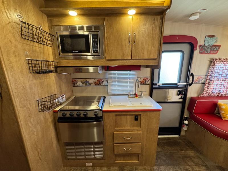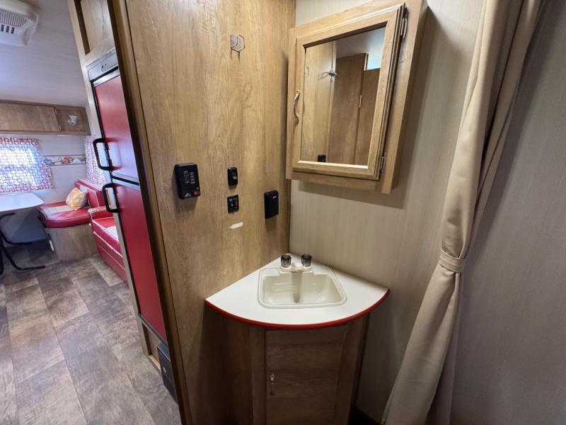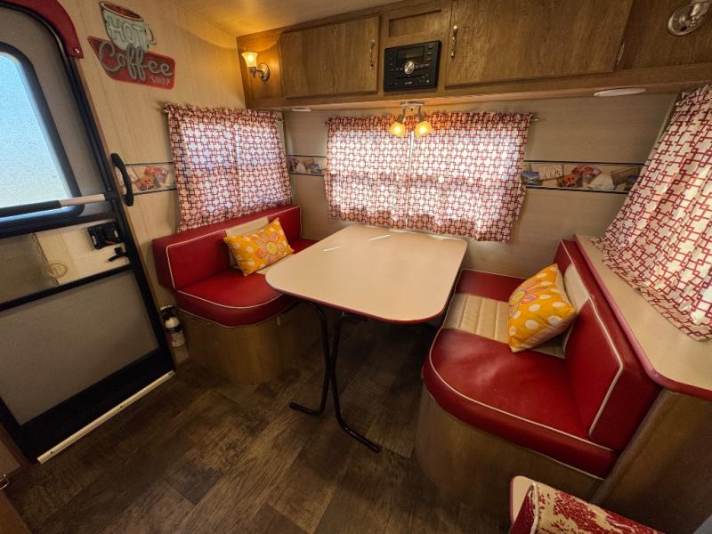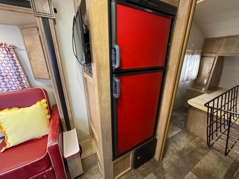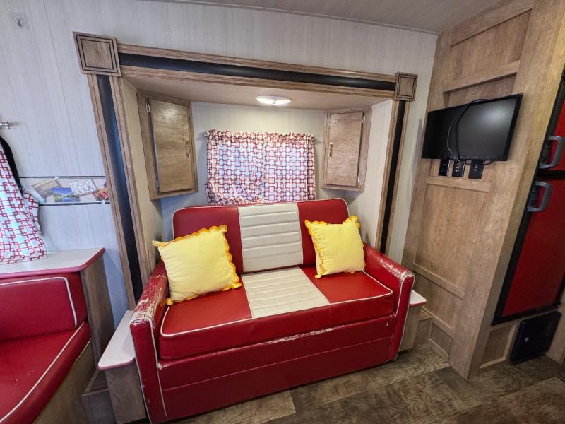 You are going to love the nostalgic feel of this Vintage Cruiser when you step inside and see the retro-style upholstery on the dinette and sofa slide out, as well as on accent pieces throughout . But, don't let the feel of yesteryear throw you as this unit is filled with plenty of modern conveniences like an overhead microwave oven in the kitchen, multiple USB charging ports both inside and out, plus energy efficient LED lighting to help keep the interior bright and cheerful, and the exterior lit well at night. With a slide out sofa, this Vintage Cruiser provides a spacious interior. It is also the largest in the line-up of models as well. Outside, you will find abundant storage with a front pass-through compartment and rear storage on either side for all of your outdoor camping gear.