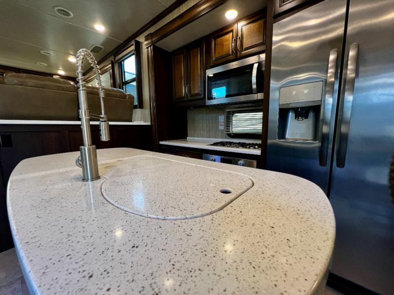 You will make plenty of memories with your family when you camp in this five-slide Big Country 4011 ERD fifth wheel. You can easily sleep up to six people in this model, plus you can do a little entertaining in the rear living area. Here you will find two sofa slide outs and a set of theater seats. Meal prep is easy in this kitchen, where you will find an island with extra counter space and a double sink. You can enjoy your meals at the free-standing dinette and in the evening plan to play a card game or two here. When you are ready to turn in for the night, then retreat to the front bedroom where you will find a king bed plus a large wardrobe and a wardrobe that has been prepped for a washer and dryer.