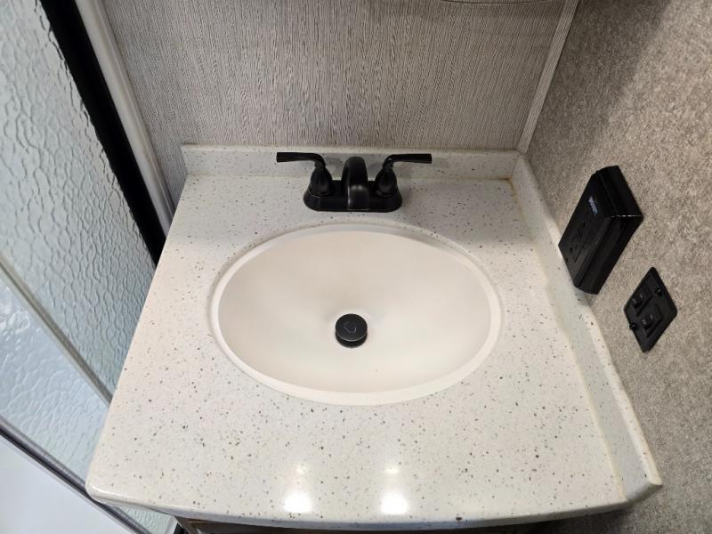 Get ready to make memories with your family while you camp in this Bighorn 3270RS fifth wheel. Whether you want to relax in the rear living room or you need to work at the pull out workstation, both can be done in comfort. Along the rear wall you will find a sofa and within the curbside slide out there are two swivel chairs. Below the LED TV there is a pull-out workstation where you can easily place your laptop. When you are ready to retire for the evening then come to the private front bedroom where you will find a king bed and more!