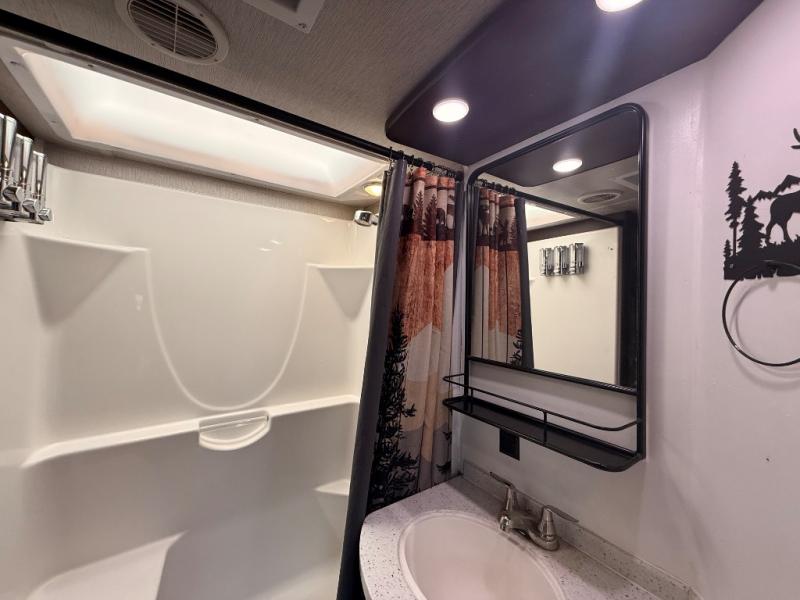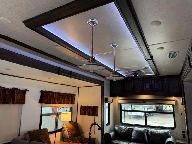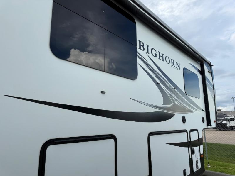 Each Bighorn fifth wheel will give you luxury and affordable features. The exterior includes the largest amount of storage with 140 cu. ft. for all of your gear, a Universal Docking Center, an 88 degree turning radius front cap design, hydraulic landing gear, and Mor/Ryde suspension. You will also find a heated and enclosed underbelly, tanks and gate valves to allow you to easily camp in all types of weather. Scenic views are available through the huge panoramic rear bay window and the windows around the dinette. More inside features include hand crafted cabinets including decor glass on all upper cabinets, LED lit crown molding, and the One Control system allowing users to remotely control and monitor many RV systems from a smartphone or tablet. Choose your favorite model and raise your status!