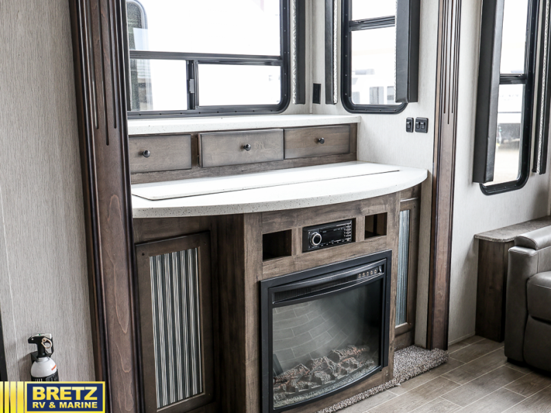 This Bighorn Traveler fifth wheel has everything you need for that perfect getaway you've been planning. Not only do you have plenty of amenities included in this unit, but you also have plenty of space to enjoy those amenities because of the three slides that have been installed, and the large wardrobe in the private bedroom gives you extra room to store all of the camping gear you may have brought along with you, like a pair of hiking boots or a rain coat. The outdoor kitchen will be one of your favorite places to spend your time because it allows you to prepare dinner while keeping an eye on the kids as they play outside.