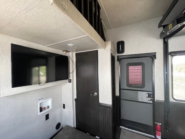 Come load up your off-road toys, your family and head out to your favorite destination where you can camp and play outdoors. This Heartland Cyclone 4270 toy hauler fifth wheel features a side patio where you can enjoy being outdoors but yet you are up off the ground. In the garage, after your riding gear is unloaded then you have 13' of livable space. Here there are plenty of cabinets, an electric queen bed plus a split bench seat which converts into a bed. Above the garage there is a loft which adds a fun spot for your kids, plus with the bath and a half everyone can easily get ready for the day! In the front bedroom you will find a tilting king bed where you can relax and get a good night's rest, plus more!