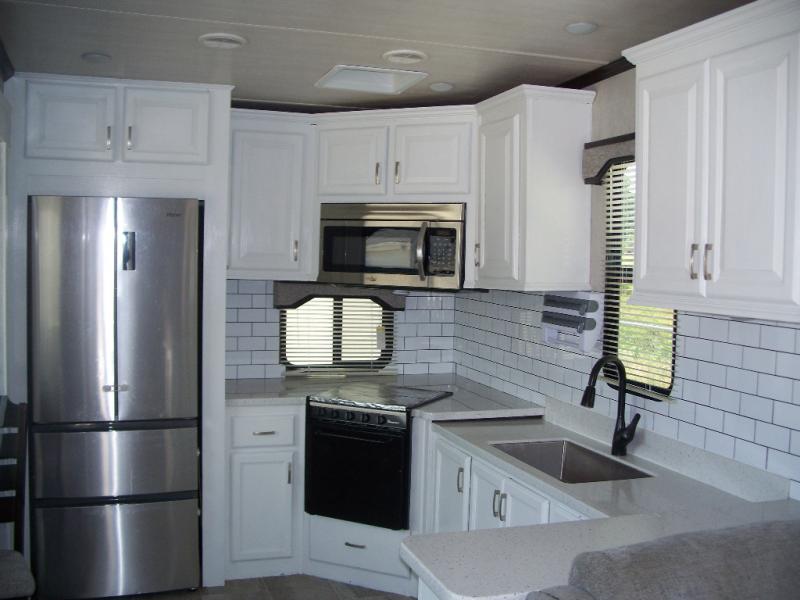 Increase your expectations for RV travel by indulging in an Elkridge fifth wheel. From the solidly built construction base with its welded aircraft-quality aluminum structure and one-piece walkable EPDM rubber roof, to the elegant exterior additions like the aerodynamic fiberglass front cap and deluxe power awning with LED lights, the Elkridge exudes its fine craftsmanship throughout every aspect of its design. The ceiling fan is a helpful feature for the warmer summer months because it will keep your guests refreshed with the cool breeze that it brings, and you will find many uses for the exterior shower with hot and cold water as you play outdoors or cook out at the campfire.