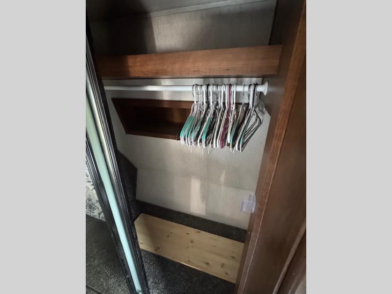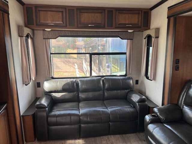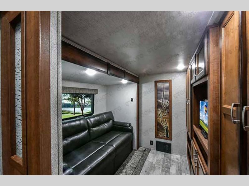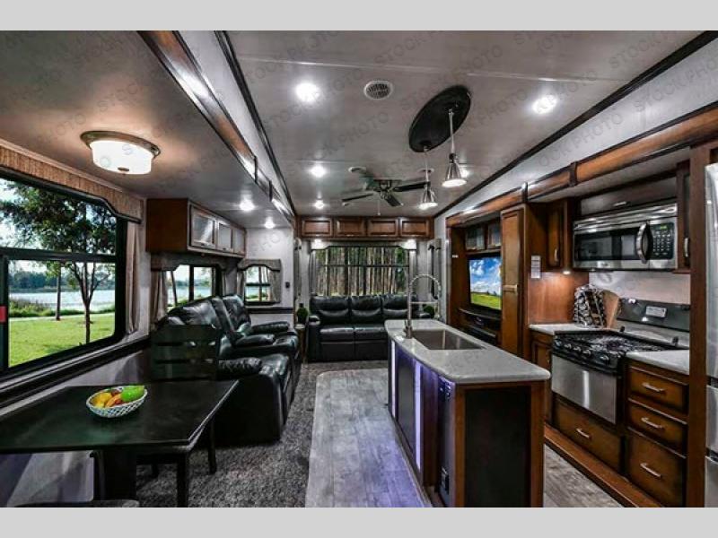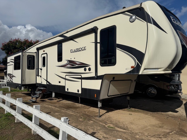 Increase your expectations for RV travel by indulging in an Elkridge fifth wheel. From the solidly built construction base with its welded aircraft-quality aluminum structure and one-piece walkable EPDM rubber roof, to the elegant exterior additions like the aerodynamic fiberglass front cap and deluxe power awning with LED lights, the Elkridge exudes its fine craftsmanship throughout every aspect of its design. The ceiling fan is a helpful feature for the warmer summer months because it will keep your guests refreshed with the cool breeze that it brings, and you will find many uses for the exterior shower with hot and cold water as you play outdoors or cook out at the campfire.