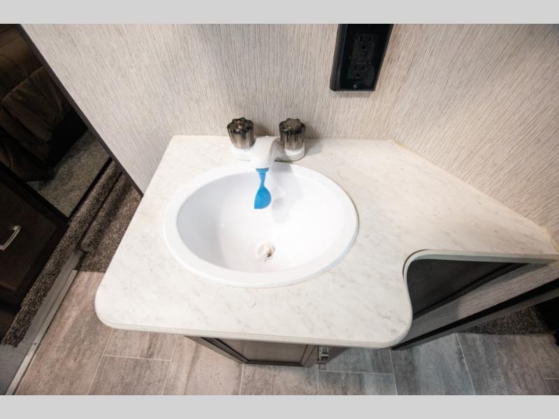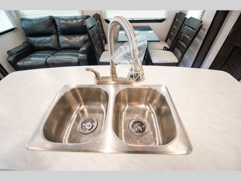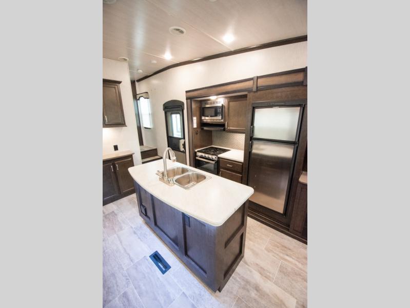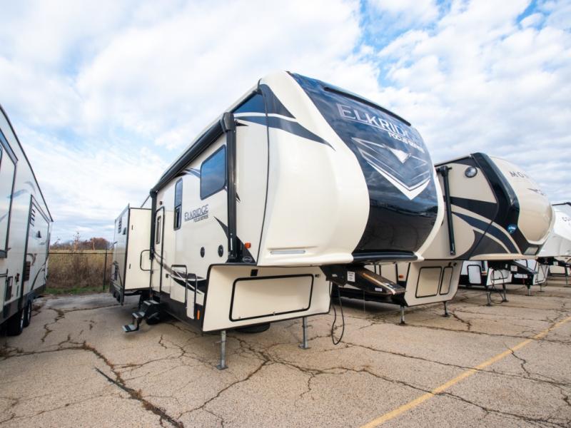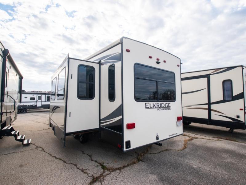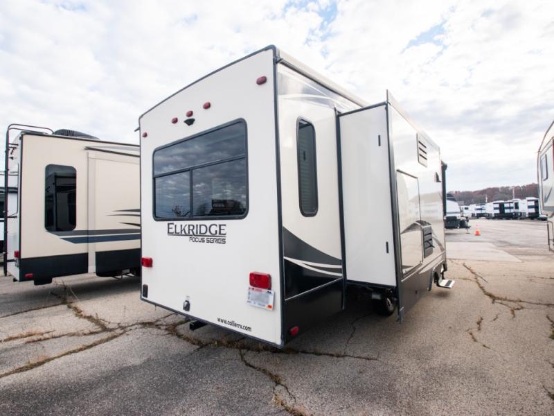 With this ElkRidge Focus fifth wheel, you can tour the countryside in complete comfort as you rest each night in your own private master suite that has a queen-size bed, a wardrobe slide, and a 6' 4" ceiling. You will also enjoy your time spent in the kitchen each day because of the exceptional amenities that have been included in order to make preparing meals easier, like the recessed three-burner cooktop with oven and the 13 cubic foot stainless steel residential refrigerator.