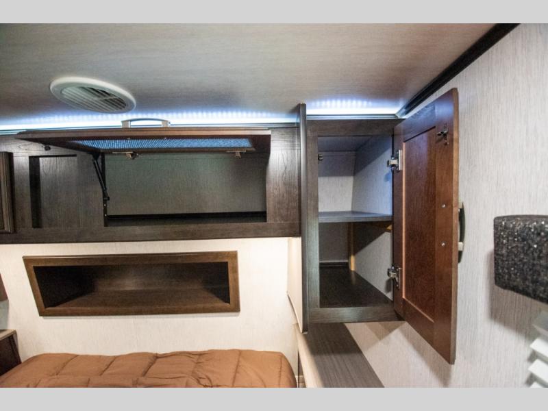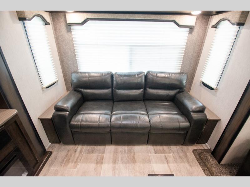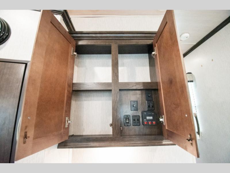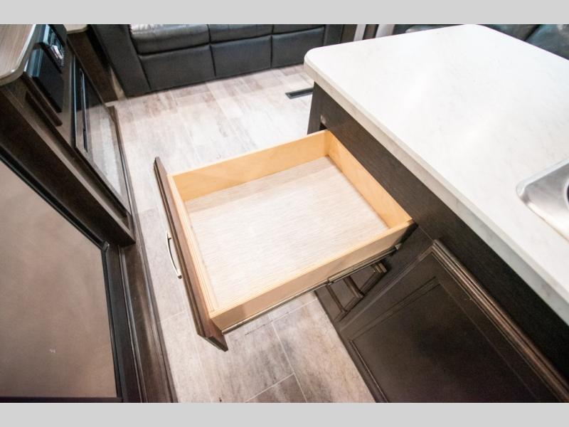 The Heartland ElkRidge Focus fifth wheels focus on what matters most to you: value! Heartland is dedicated to delivering a product that is not only stylishly furnished but also exquisitely detailed with plenty of standard amenities to ensure that you receive the most for your money. You will find interior LED lighting and solid cabinets with spring-loaded hidden hinges included in each of the ElkRidge Focus models, and the exterior speakers and shower will be easy to use at any time of the day because of the electric awning with LED lights that has also been installed. No longer will you have to endure sweating during the hot summer months because the ElkRidge Focus offers a ceiling fan as standard in the living area.