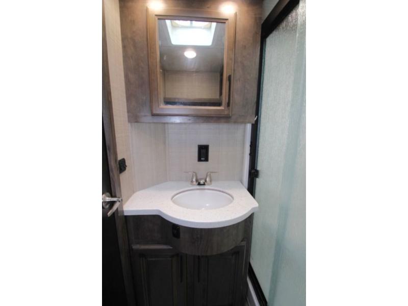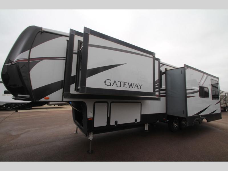 When you are ready for a relaxing time away from home, come choose a Gateway luxury fifth wheel! The Dexter axles with MorRyde suspension provide a smooth ride, and the weatherguard insulation package allows you to camp in all types of outdoor conditions. To add to the modern style, stainless steel appliances have been installed which create a sleek and polished finish, and the one-piece fiberglass shower with seat and LED-backlit lavatory sink will stun both you and your guests upon entry.