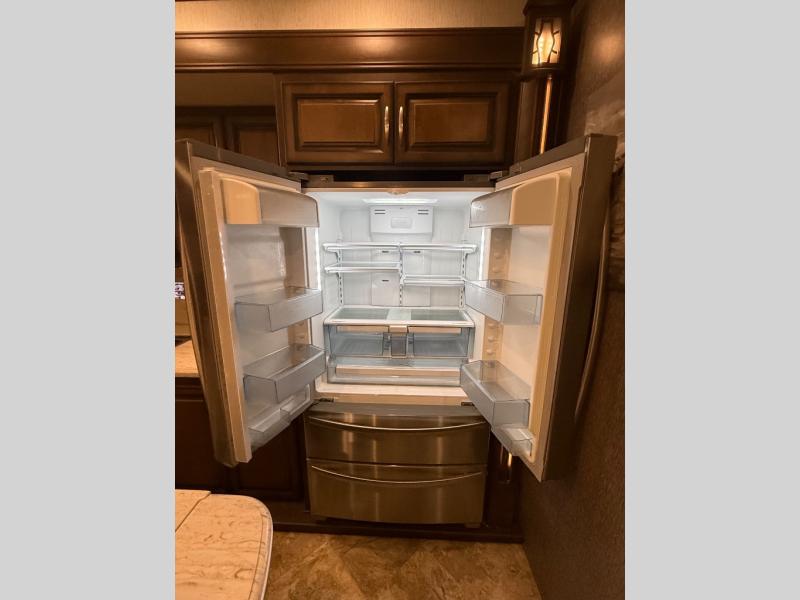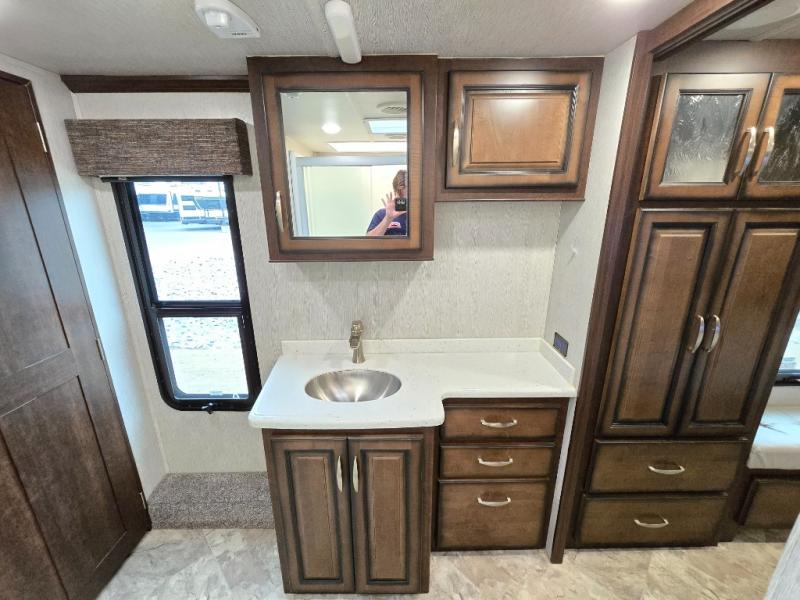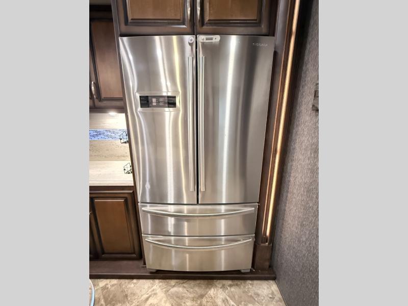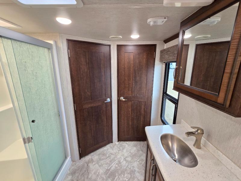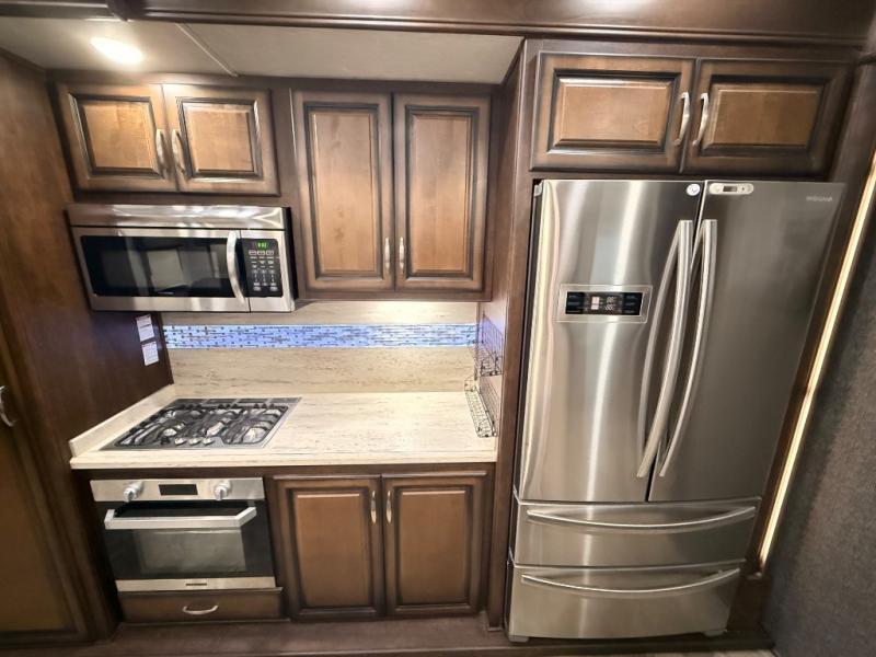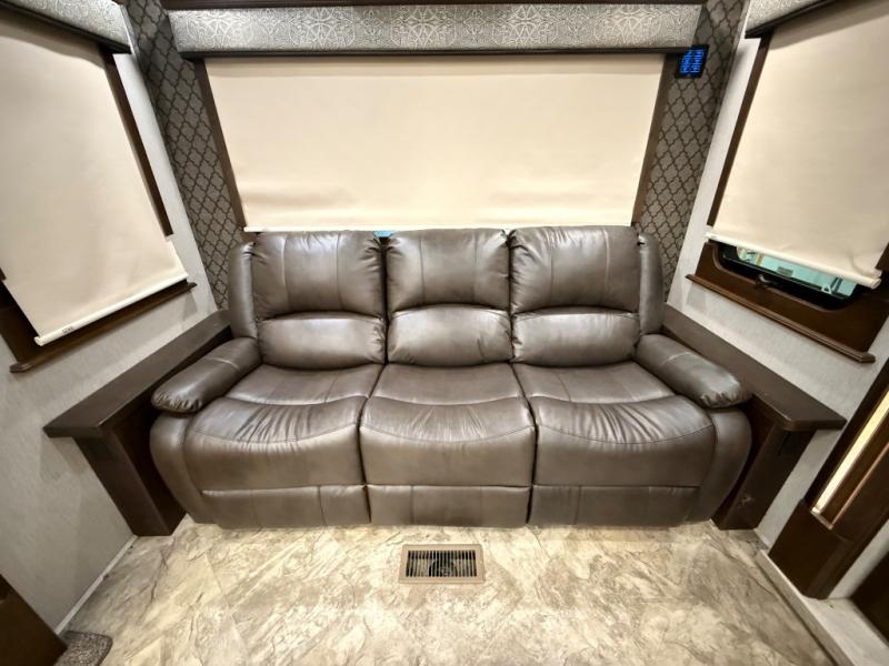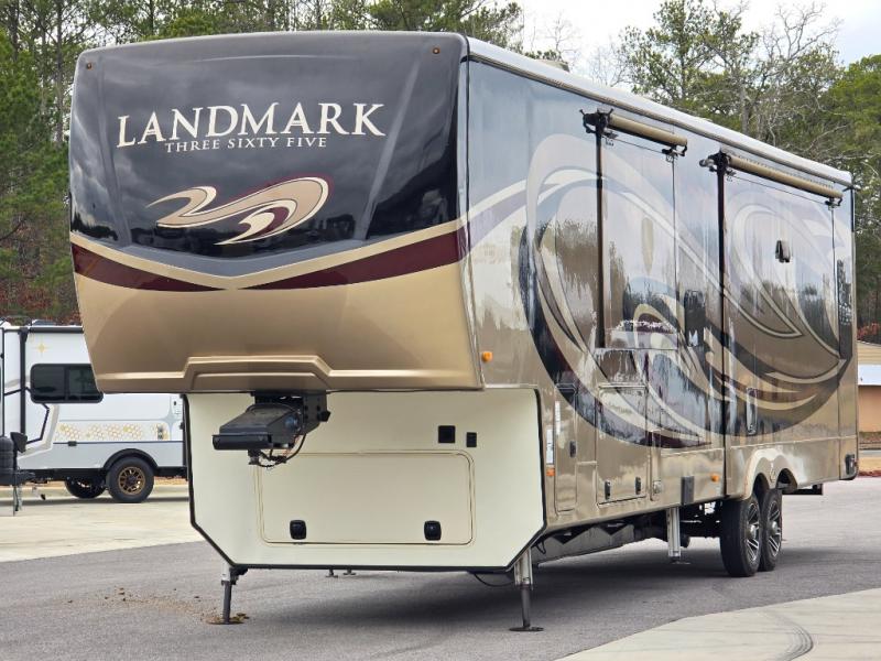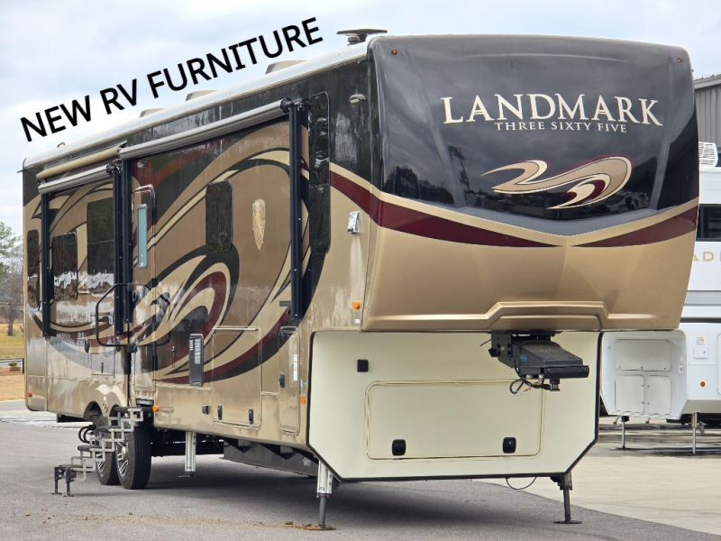 Come experience true luxury when you camp with the Landmark 365 by Heartland RV. These fifth wheels boast of comfort and convenience throughout. The sofa tables offer USB ports, so you can easily charge your electronic devices. You will also enjoy power theater seating with heat and massage - now that's luxury! The bedrooms offer adjustable reading lights, a power tilt bed, plus a TV. A few key features that you would find at home include a backlit tile backsplash, a residential refrigerator, and a farmhouse stainless single basin kitchen sink with a cutting board. There are also beautiful Maple hardwood cabinets throughout plus so much more!