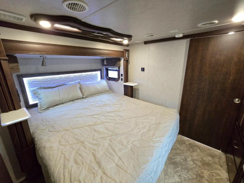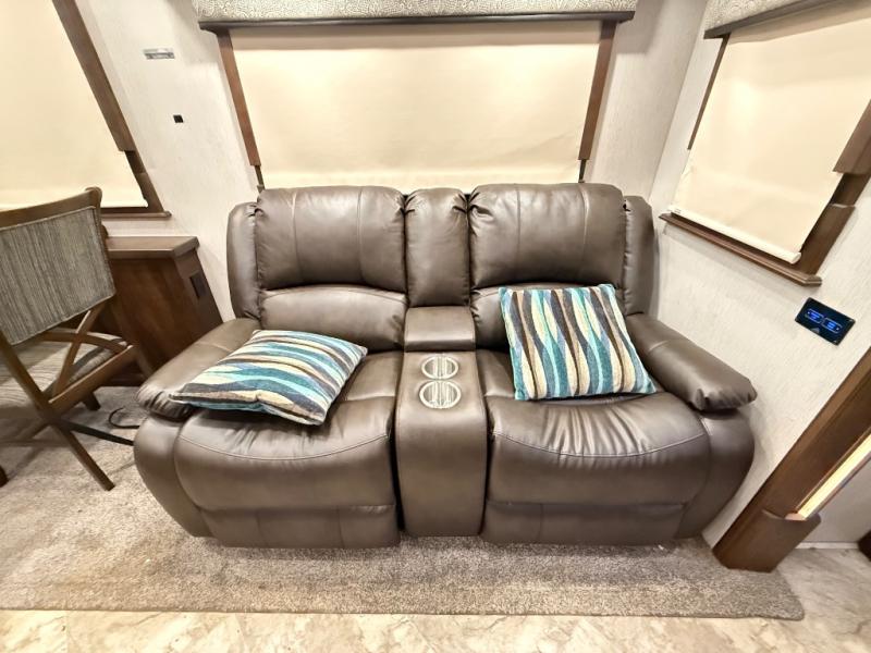 Enjoy spending time away from home and in the comfort of this Heartland Landmark 365 Newport. Throughout this model you will find plenty of features that you would expect from home. As you step inside you will love the LED lighting throughout, plus be sure to notice the edge lit solid surface countertops. When you are ready to watch a little TV then come enjoy the rear living area where you will find a TV with a soundbar, a comfortable sofa, and theater seats. While you are relaxing in the living room you can also charge your electronic devices from the USB ports at the sofa table plus so much more!