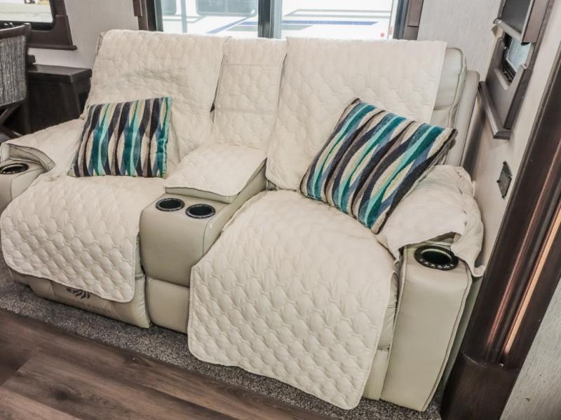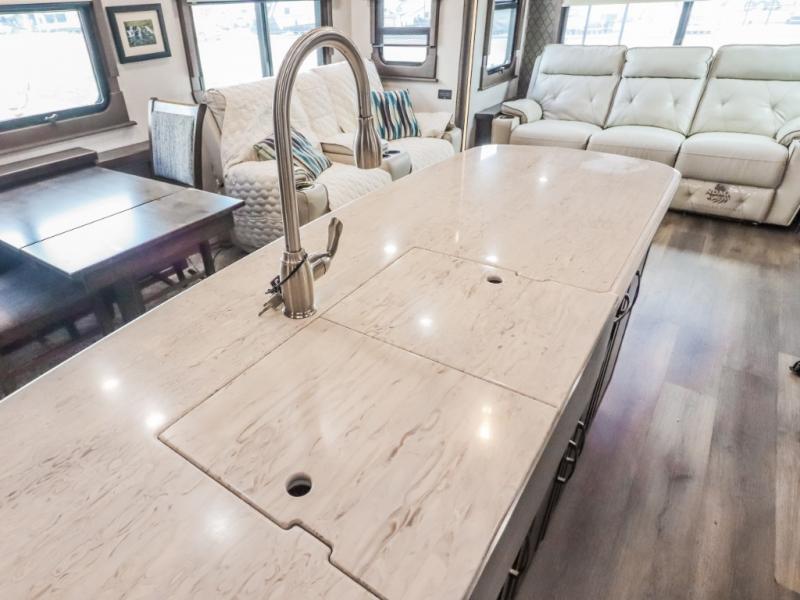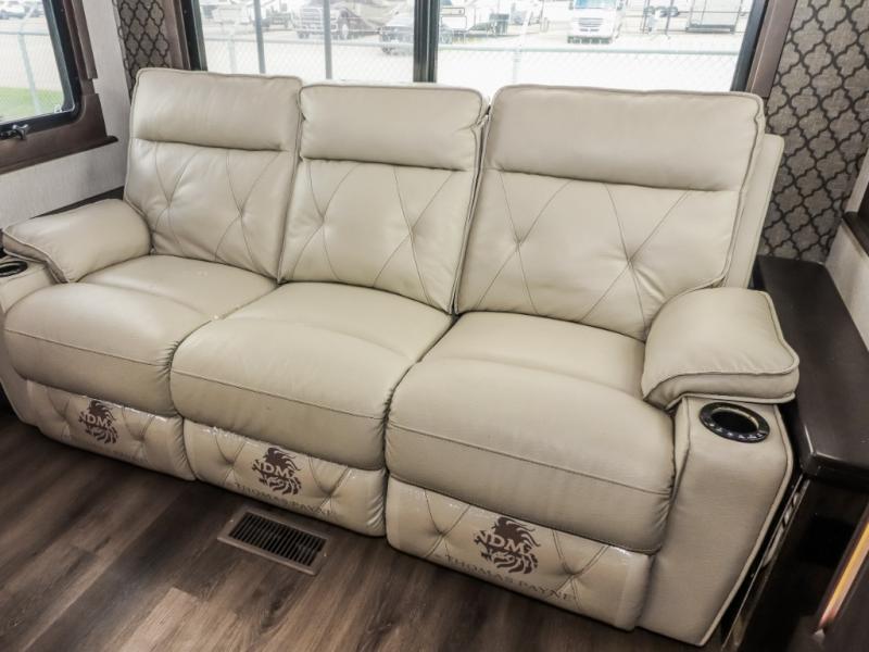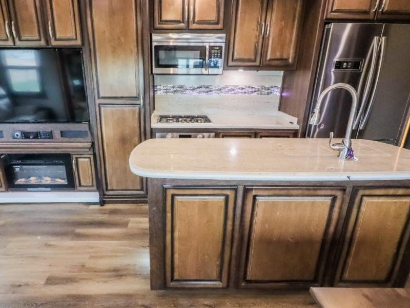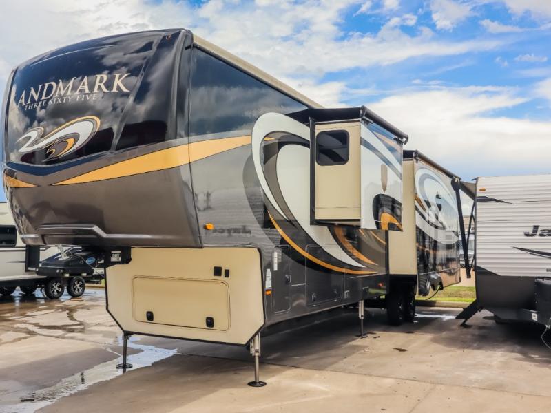 Come experience true luxury when you camp with the Landmark 365 by Heartland RV. These fifth wheels boast of comfort and convenience throughout. The sofa tables offer USB ports, so you can easily charge your electronic devices. You will also enjoy power theater seating with heat and massage - now that's luxury! The bedrooms offer adjustable reading lights, a power tilt bed, plus a TV. A few key features that you would find at home include a backlit tile backsplash, a residential refrigerator, and a farmhouse stainless single basin kitchen sink with a cutting board. There are also beautiful Maple hardwood cabinets throughout plus so much more!