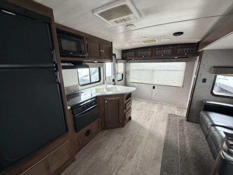 Start your journey off right with one of these Mallard Ultra Lite travel trailers by Heartland! They are a smaller, lighter package but they still pack in all of the at home features you will want on your next vacation getaway. Features like the oversized windows to let in natural lighting while allowing you to look out at your beautiful scenery anytime of day to the wide-open prep area in the kitchen and the arched ceilings measuring at almost seven feet high. These models were built to give you years of enjoyment thanks to the 6-sided aluminum construction, the fully walkable laminated roof, and the wide-trax suspension. The exterior even offers great features like the finished off pass-through storage area, a power awning with LED lights, and even outside speakers hooked up to the 12V AM/FM player for you to crank up the tunes inside or outside!