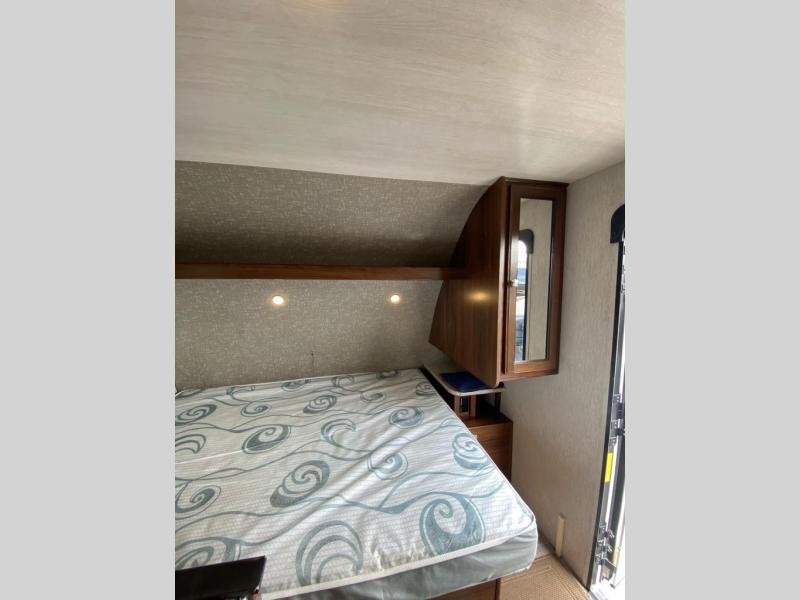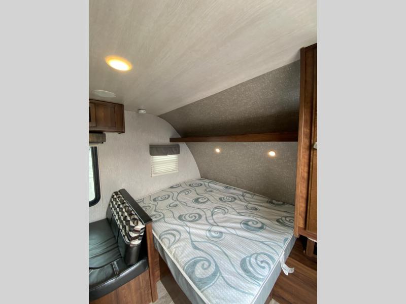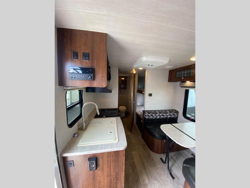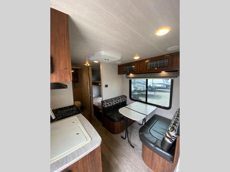 This Mallard Ultra Lite travel trailer is a dream come true for outdoor adventurers. With its set of bunk beds and queen-size bed, you have plenty of comfortable sleeping options to look forward to as you explore during the day, and as you work up an appetite while climbing mountains and hiking trails, you will certainly appreciate the amount of features that have been included in this trailer's kitchen, like the 3-burner range top and 6 cubic foot double-door refrigerator, plus a booth dinette for you to enjoy your meals at or transform into an extra sleeping space. If you still want more of the great outdoors after returning back to your trailer at night, you can spend your time outside underneath the power awning with LED lights as you gather around the campfire and tell ghost stories.