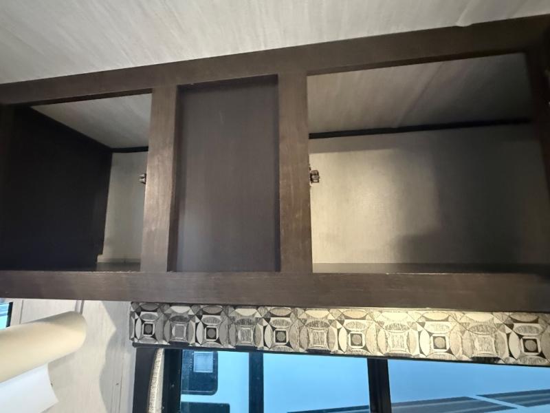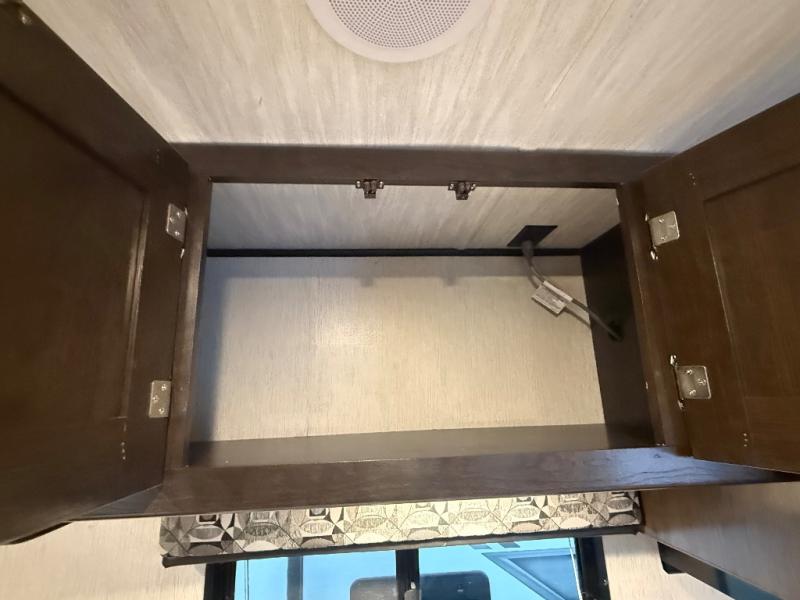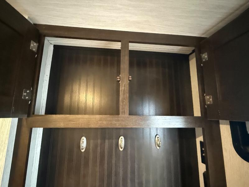 Spend your weekends touring the countryside and admiring the wonderful scenery with this Pioneer toy hauler! The queen-size innerspring mattress in the front private bedroom will give you a comfortable place to rest your eyes each night, and your kids or your friends can cozy up on the two fold-up sofas in the back. Everyone will be delighted to partake in a hearty breakfast that has been prepared on the three-burner range top accompanied by a cold glass of milk from the double-door refrigerator.