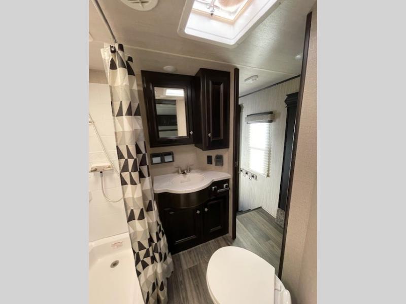 Whether you are taking your off-road toys to the sand dunes or to a competition, you will want a luxury Heartland Road Warrior fifth wheel toy hauler! These models are available with the Ready To Go Package which includes features such as hardwood cabinet doors and drawers, solid surface counter tops, and LED lighting, plus Cold Crack resistant flooring. You can relax by the 5100 BTU fireplace with your beverage of choice. The Get Gone Package has a heated and enclosed underbelly, a universal docking station, and a rear garage screen, as well as a power awning with LED lights! So, what are you waiting for? Come choose your luxury Road Warrior fifth wheel toy hauler by Heartland today!