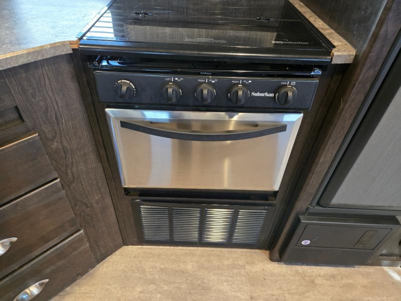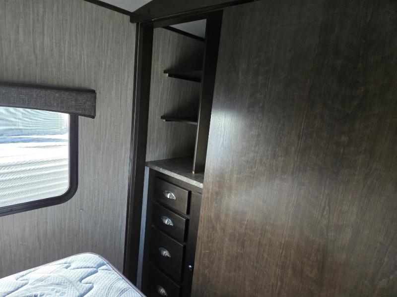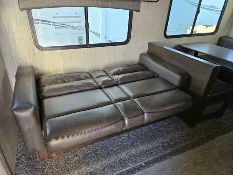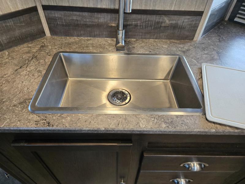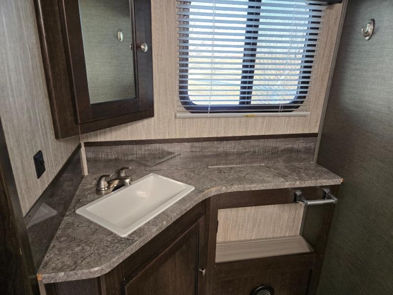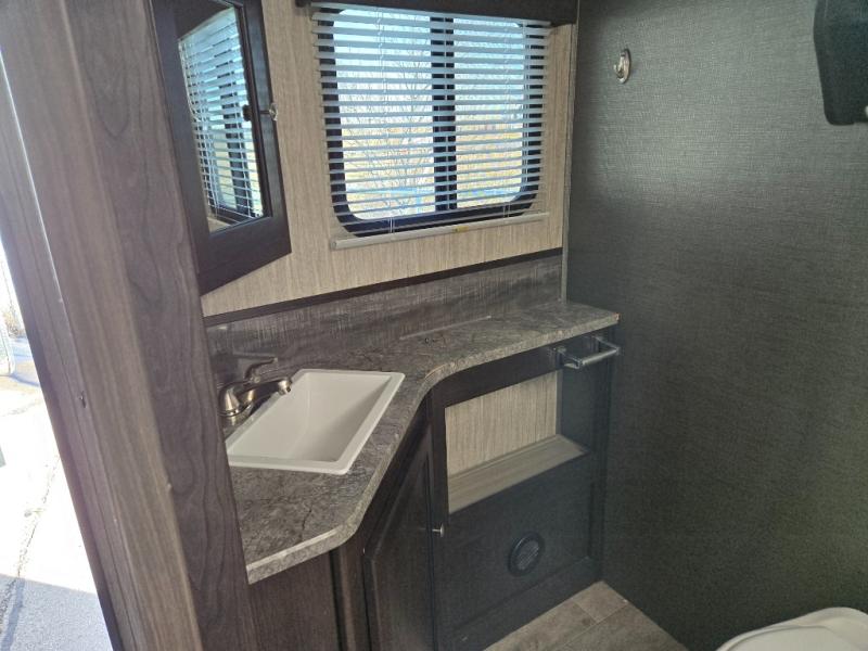 You can stop daydreaming and start living your camping dreams when you have this travel trailer. Beginning with the slide out, there is a sofa and a dinette that can be used for seating during the day and at night you can convert this area into additional sleeping space for the kids, grandkids and/or camping friends. The rear bathroom features all of the amenities that you would expect to find from the shower to the toilet, and bathroom sink with lots of counter space. The cook will love the walk-in pantry with plenty of room to store dry goods and extra snacks, plus the kitchen area features counter space around the sink for meal prep and drying dishes. Take one look, you will be happy you did.