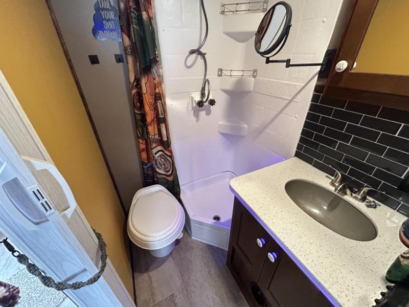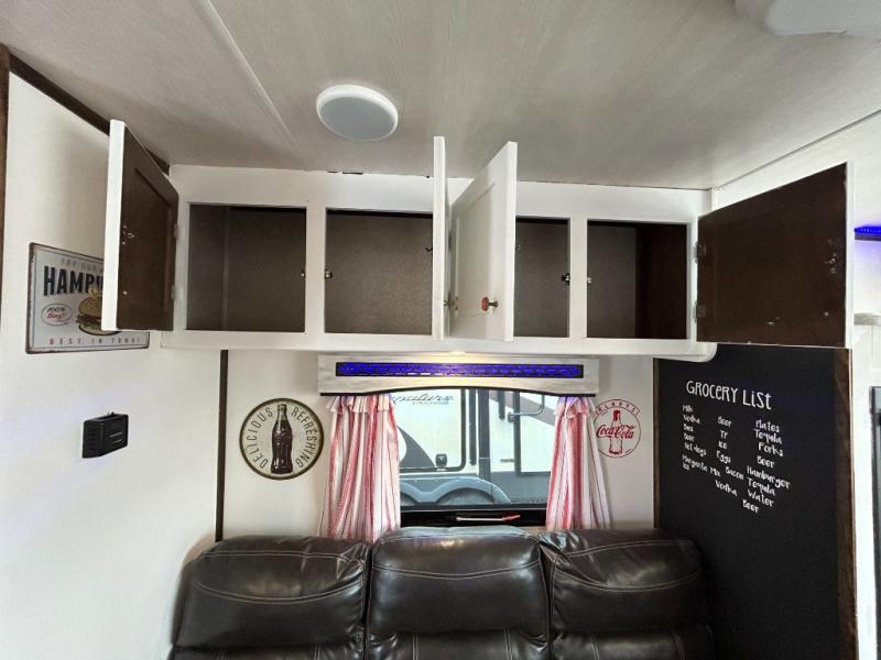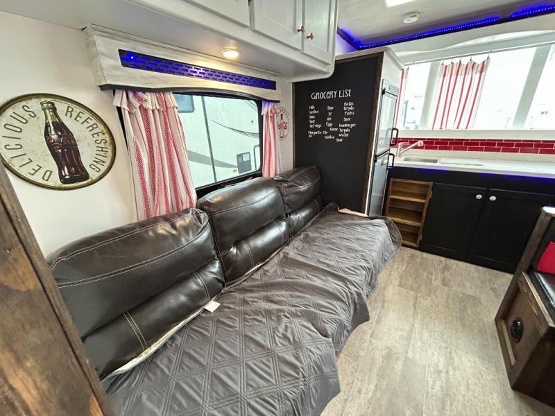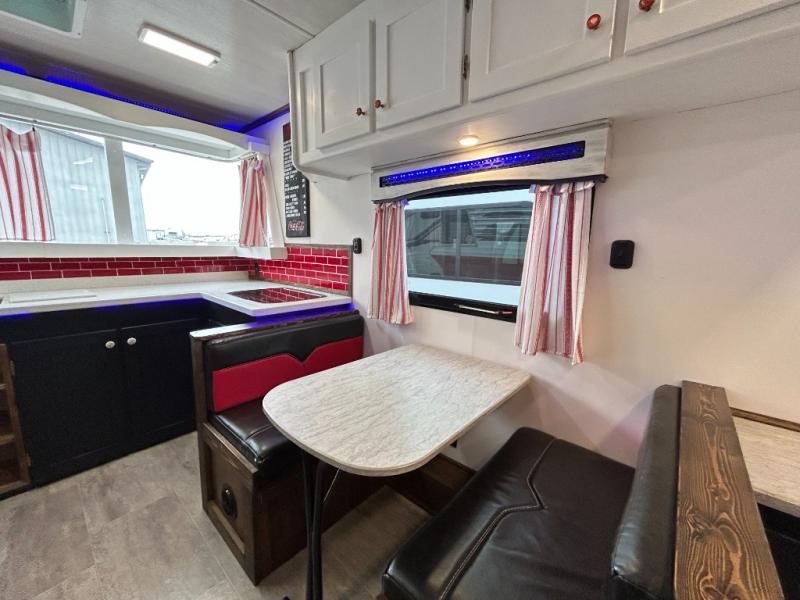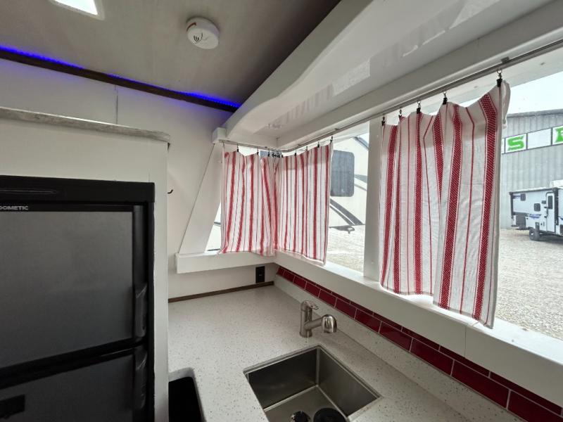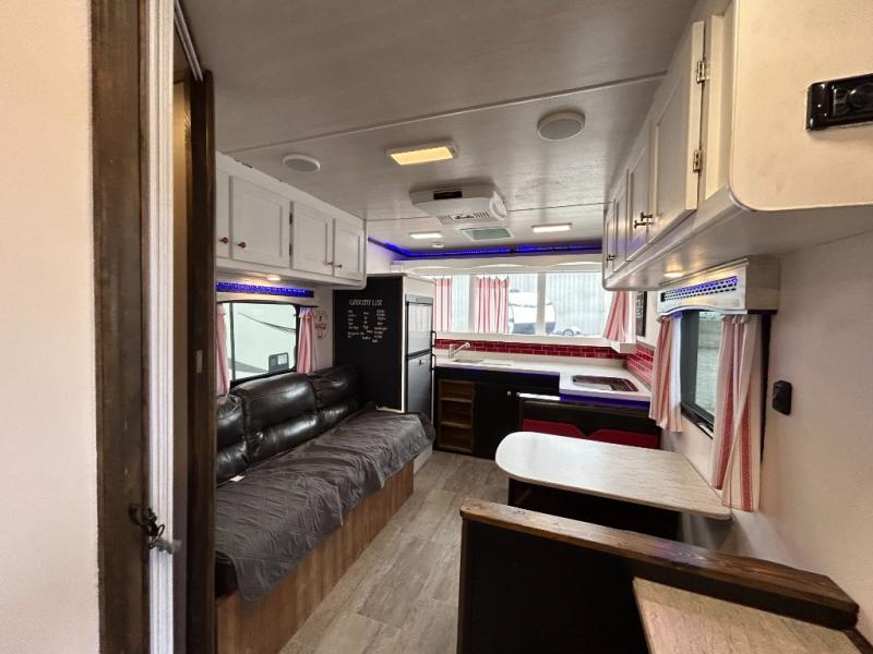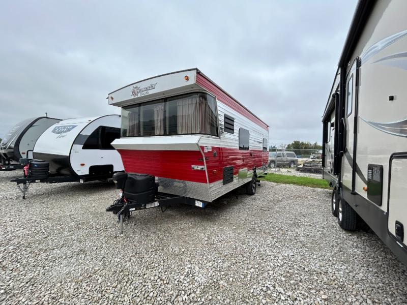 For the kid inside of you who wants to bring back your memories of camping, come choose the retro style Terry Classic by Heartland RV. These models are lightweight and can be towed with just about any vehicle. Outside you will find baggage doors with magnet stays so now it is even easier to load up your camping gear! Along the front there is a molded Lexan window which just adds to the retro appeal. Inside you will enjoy LED ceiling lights with cove surround blue accent lights and in the living room there is a 32” LED TV. Throughout the kitchen area you will find solid surface counter tops with LED lighted edges, a 6 cu. ft. refrigerator, stainless steel appliances, plus so much more!