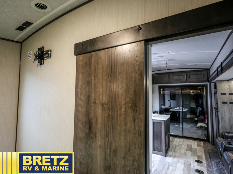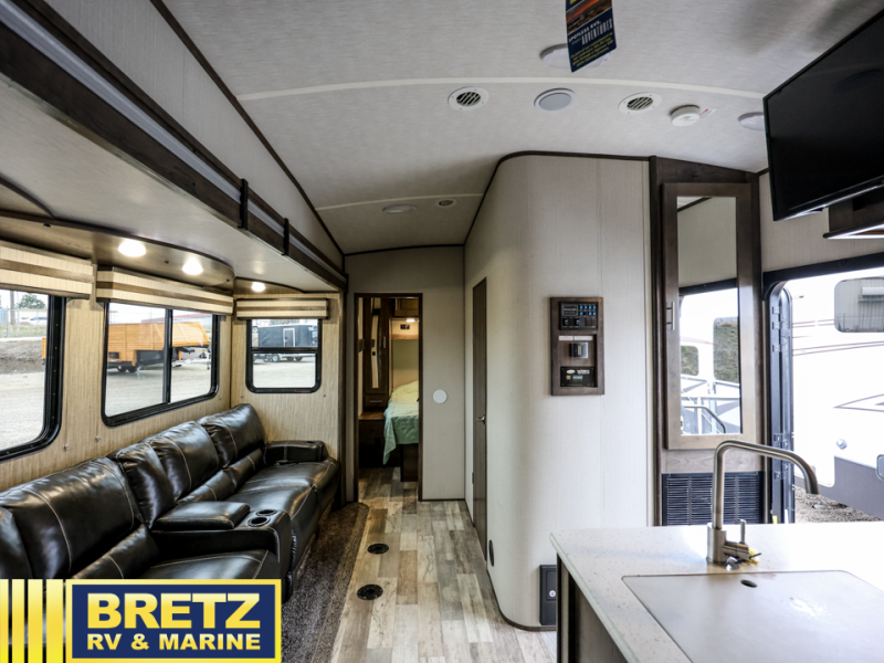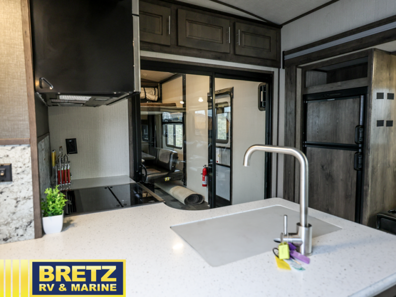 This Torque toy hauler is completely accessible with two entry doors. With a 12' 6" separate garage for your toys, you can choose to store them while you are parked or unload them and use the space for the electric queen bunk and dual opposing sofas below which will allow you to sleep six people. With this toy hauler, there is nothing stopping you from partying outside every night. Grab some folding chairs and an ice cold beverage and head to the raised patio where you can gather together underneath the 19' electric awning that will protect you from any rain drops that may come your way.