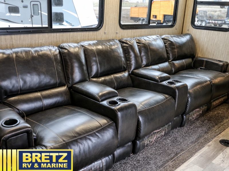 Get ready to have plenty of fun that will last all weekend long with any of the Heartland Torque toy haulers. You can easily fuel up all of your toys at the outside 30 gallon fuel station, and you can also access the rest of your large camping gear outside in the large finished pass-through storage compartment. In the garage you will find that the rubberized floor is fuel and oil resistant making it so simple to clean up any spills or mishaps along the way, and the garage is also a handy place to store any camping essentials you may have brought along with you because you will find huge overhead storage spaces scattered throughout. Not only will your toys be riding in the lap of luxury, but so will you with the beautiful interior living space that comes fully furnished with relaxing residential furniture with built-in recliners, high-end Ashlyn cabinetry, and high-end carpeting.