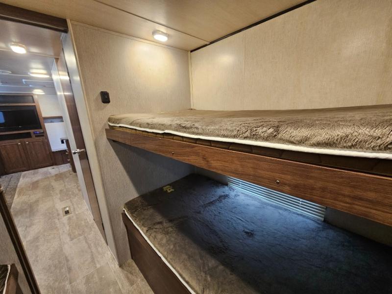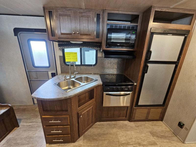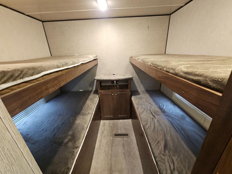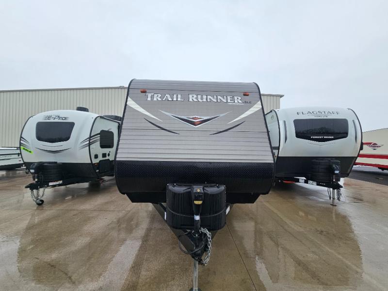 This Heartland Trail Runner SLE travel trailer offers plenty of space for your larger family to enjoy camping. This unit features four bunks in the rear private bunkhouse for your kids and their friends! Within the slide out there is a U-shaped dinette where you can enjoy your meals, plus there is a sofa. This kitchen has all of the amenities needed to create your favorite meals while you are away from home. A sliding door closes off the private bedroom from the rest of the trailer. Here you will find a comfortable queen bed, overhead storage, and nightstands.