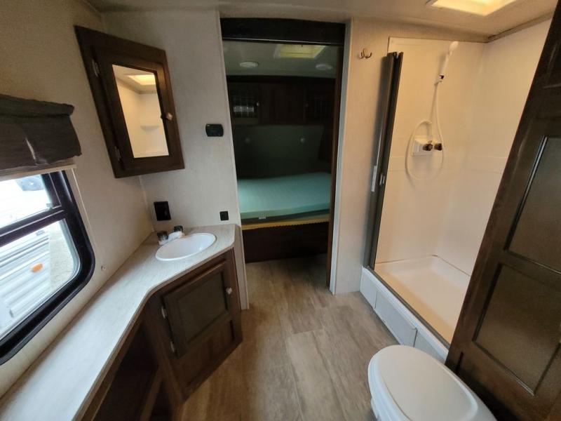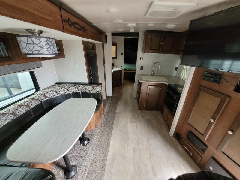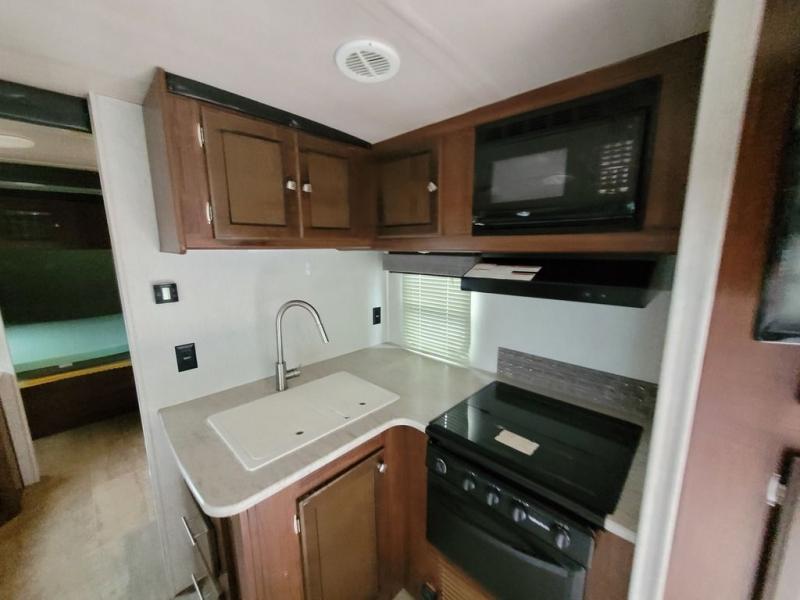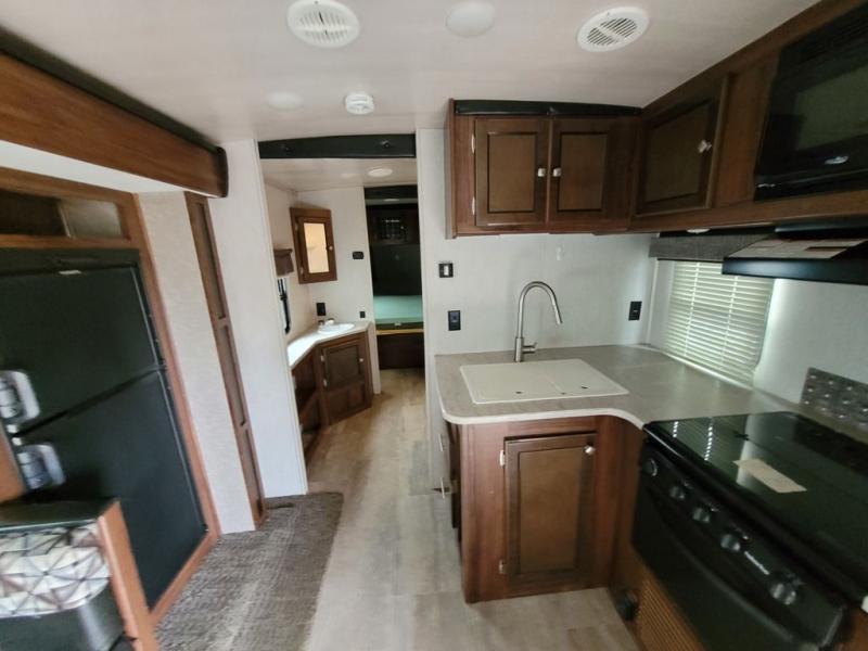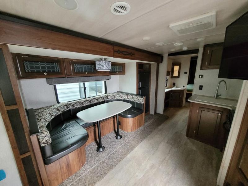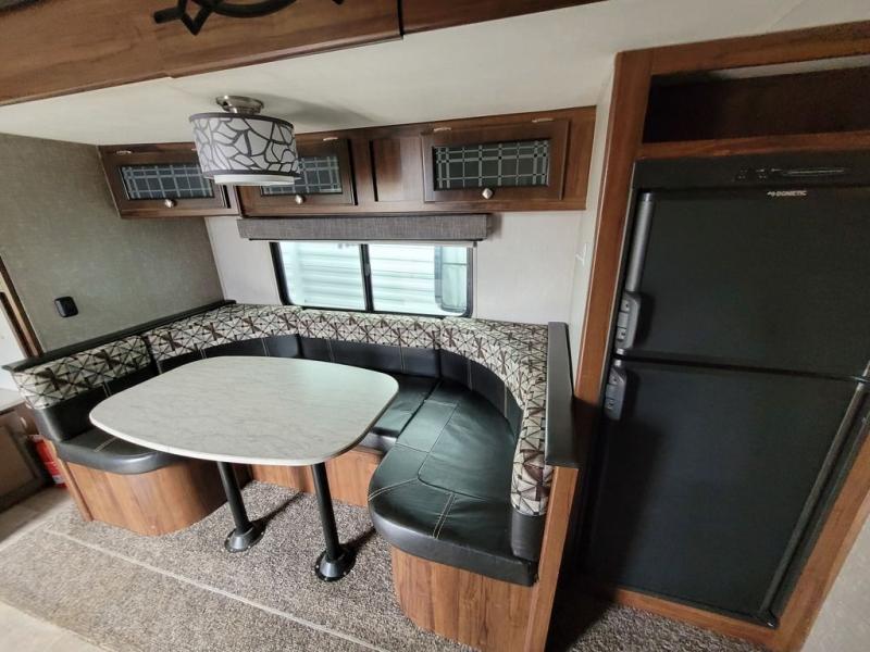 You will find plenty of luxury features in this lightweight travel trailer to enjoy for years to come! It features comfortable seating including a U-shaped dinette to enjoy your meals at or convert into an extra sleeping space. The dual entry doors make for a smooth flow of traffic in and out of the trailer especially when you want to sneak out for a walk. Another convenient feature is the walk-through bath with sliding doors that saves on space. In the L-shaped kitchen, you will find a double door pantry for all your non-perishables that offers plenty of space to hold extra goodies. Venture inside, you will be glad you did!