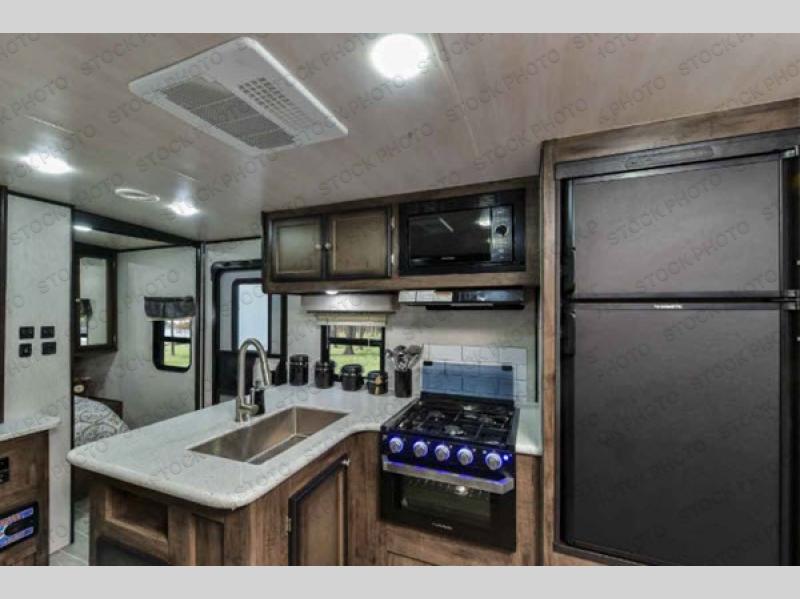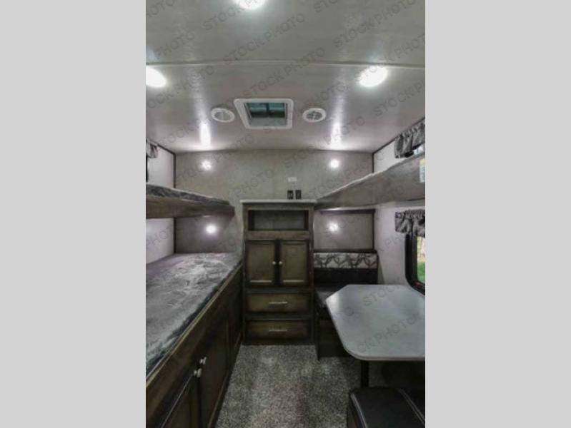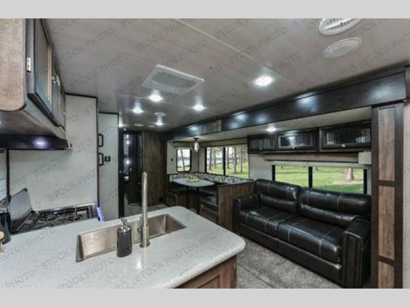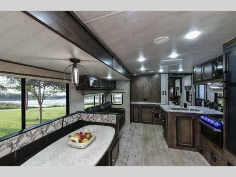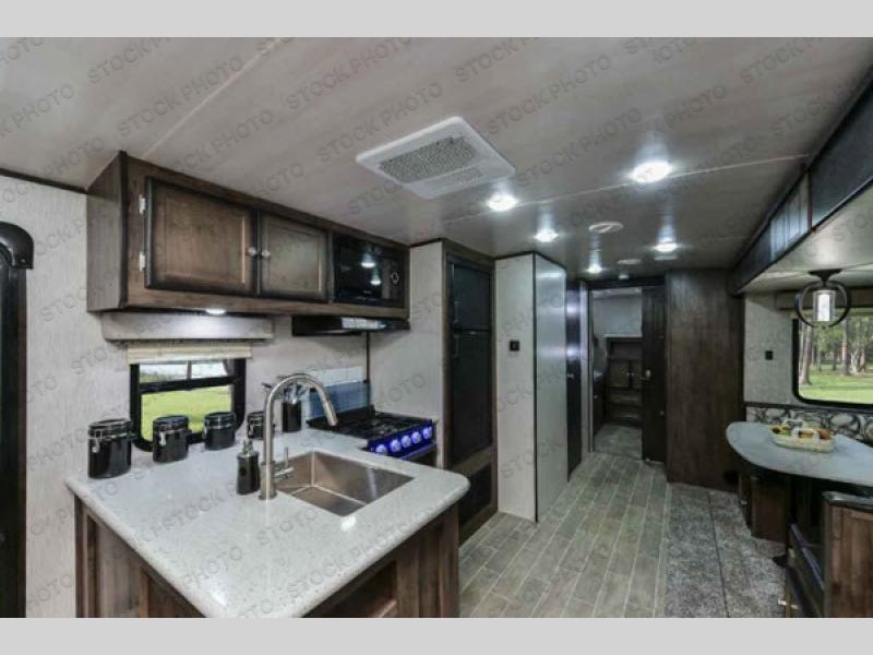 As you step inside this travel trailer you will be wow'd by all its features! The bunkhouse is sure to be a crowd pleaser for the kiddos, and the chef in your family is sure to love cooking at the outdoor kitchen. You can enjoy those delicious meals at the U-shaped dinette or transform it into an extra sleeping space if the two bunk beds and smaller dinette don't do the trick. When you're ready to hit the sack then head into the front private bedroom and jump into the cozy RV queen bed that has night stands for your cell phone and such on either side.