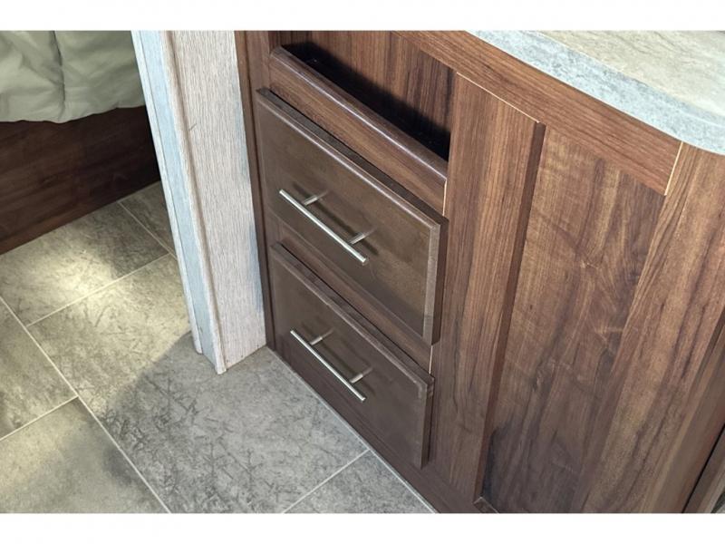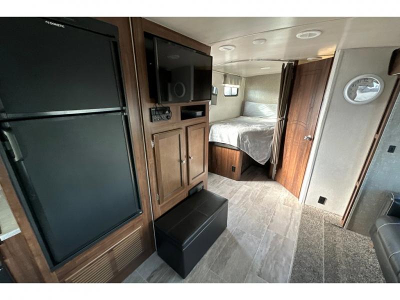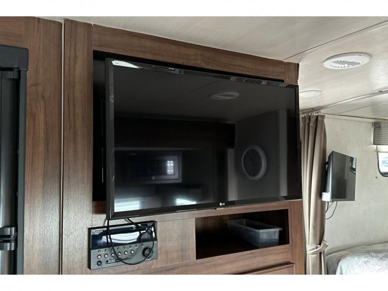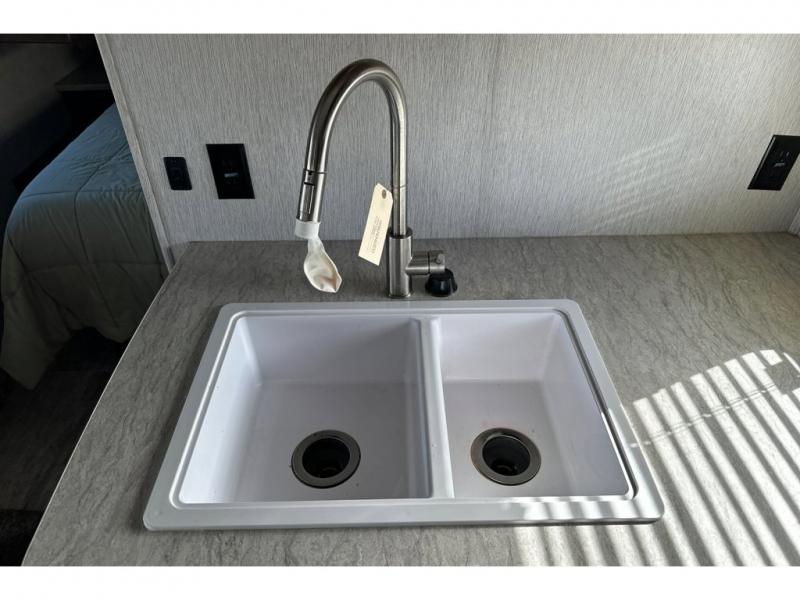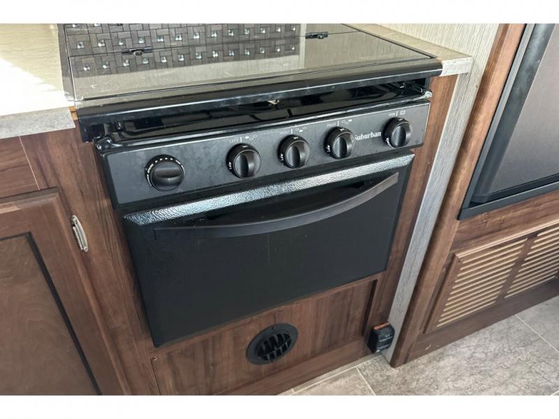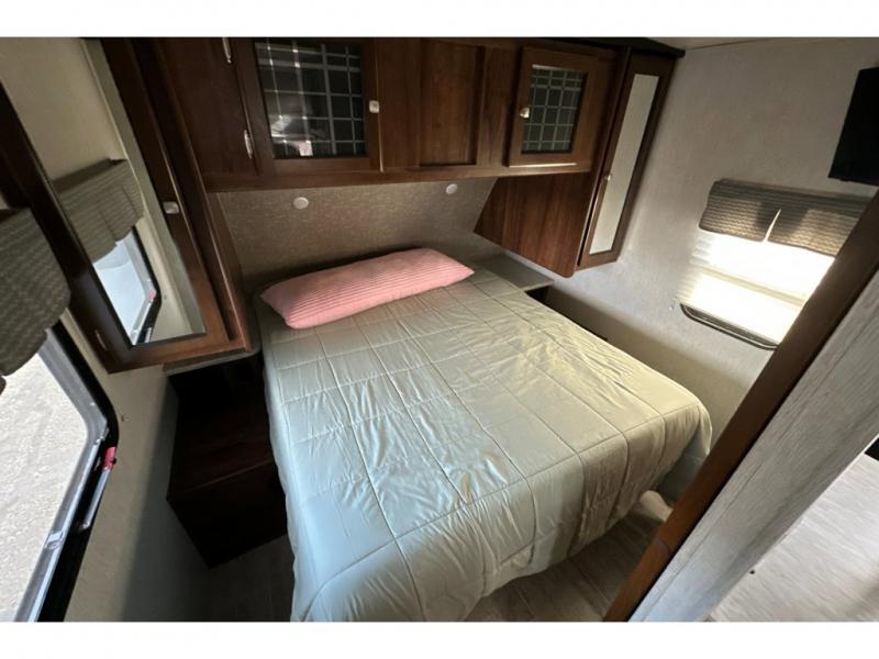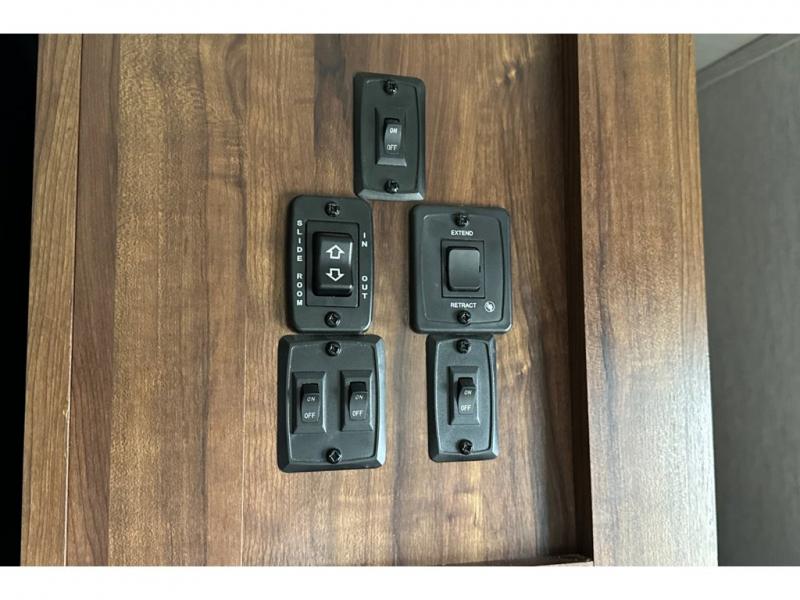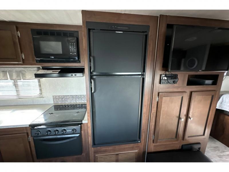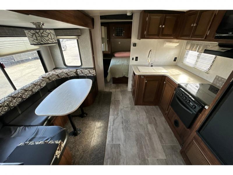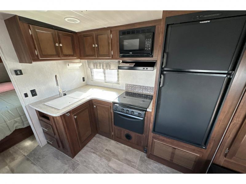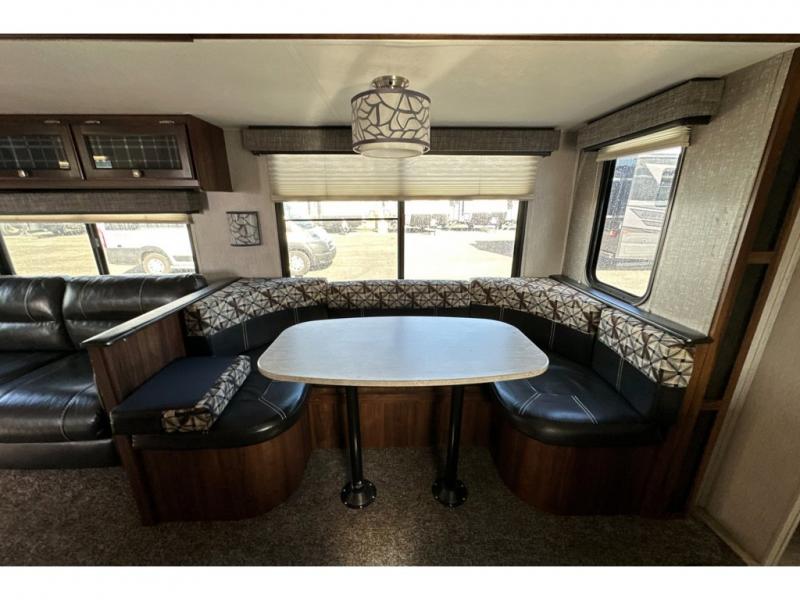 Your family of nine will enjoy all of the space provided by the slide out, and all the features throughout including a set of queen bunk beds for the kids, and the two kitchens – one inside and one outside. Another convenient feature is the U-shaped dinette where you can enjoy your meals and play cards at, or transform the furniture into extra sleeping space. You will find more living space outdoors under the awning, and there is much more to enjoy each time you head out for a fun adventure!