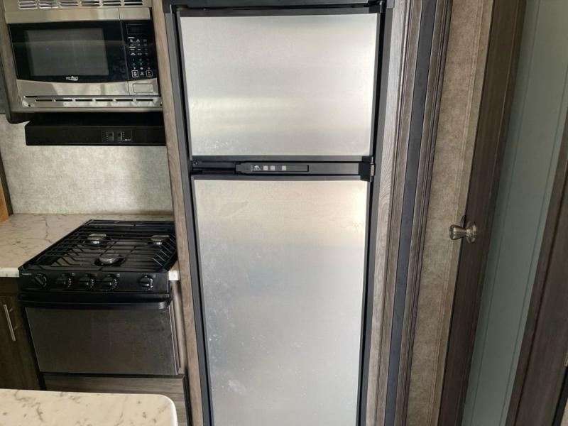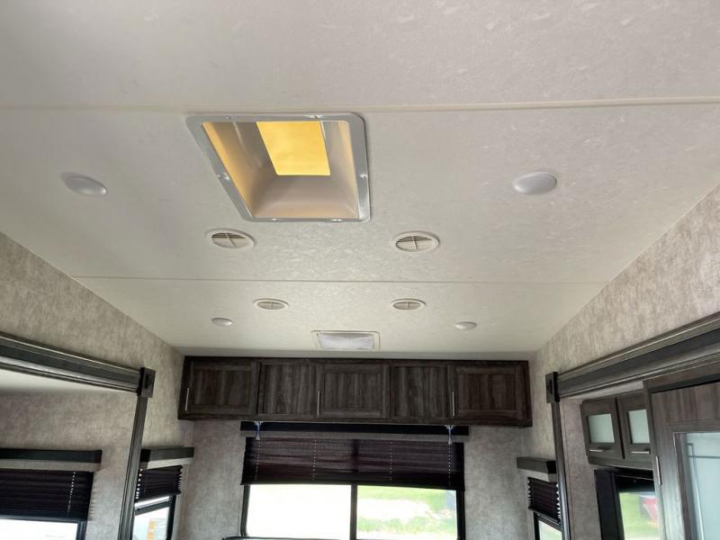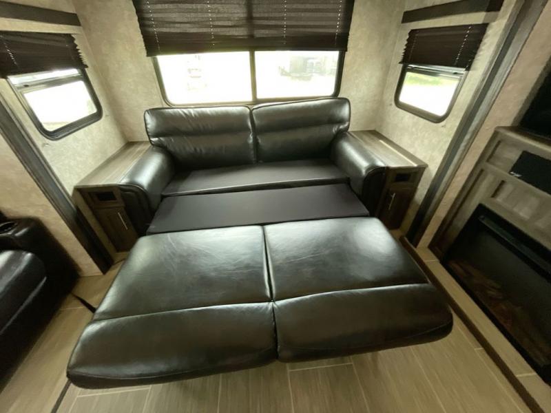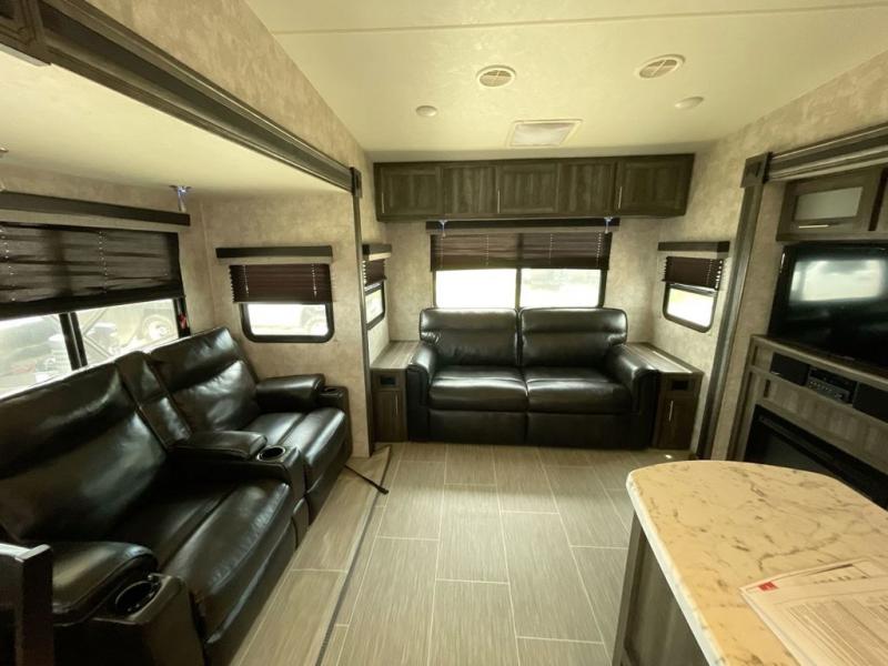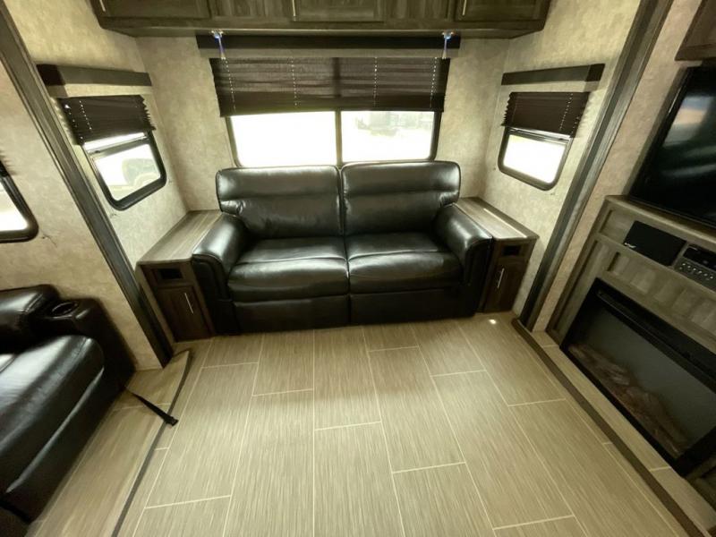 Looking to travel with your own accommodations to see new places, visit family in another state, or watch your kids' tournaments? You might start envisioning yourself relaxing inside on your own theater seats while watching the TV and visiting with your spouse laying on the sofa. You can draw straws to see who will cook tonight with all the appliances available to make your favorite meals. You can then retire to the front bedroom after getting cleaned up in the full bathroom from your fun outdoor day. You will surely appreciate the floor space provided by the triple slides as you move about the unit. Start traveling the way you like!
