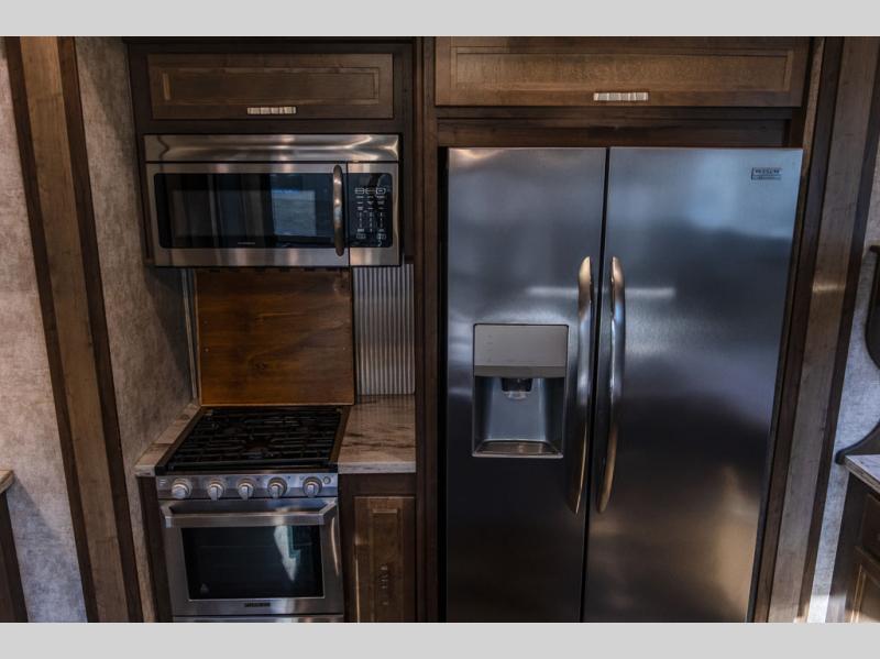 With any Highland Ridge Open Range 3X fifth wheel the weather conditions will not matter! From the 3' wall thickness with Thermal Barrier, the Extreme Arctic package, heated and enclosed underbelly, heated storage area, and high performance furnace to the two A/C quiet residential returns you can be warm or cool indoors, it's your choice. Luxury and residential style are found inside with the arched vaulted ceilings, 7' slide out height, wood trimmed window frames with roller shades, stainless steel appliances, and the flush mount glass stovetop. It's time to travel wherever the road takes you, choose a Open Range 3X model today!