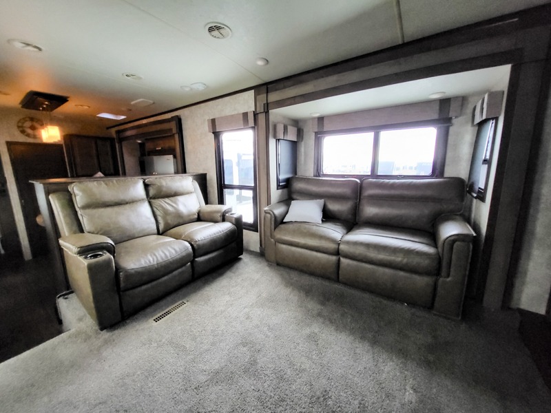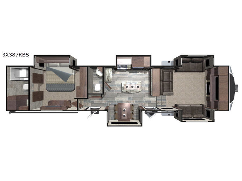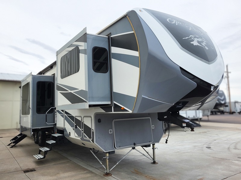 It's time to stop imagining all the fun you will have away from home, and hitch up this Open Range 3X fifth wheel and hit the road. Model 3X387RBS offers a separate living area from the kitchen and dining space. The cook will surely love all the appliances, and floor space with the dual slides, and the guest will enjoy the openness in the living area with dual slides. The walk-through bedroom offers privacy in the rear bath for yourself as the guest use the half bath. The motion sensor light in the bedroom and hallway allow you to sneak to the kitchen or half bath without falling over shoes that might have been left out overnight. The dinette table includes a flip down extension leaf if you need more table space, and a pullout drawer to store additional items. Come see what else will provide you luxury and comfort each time to leave home.