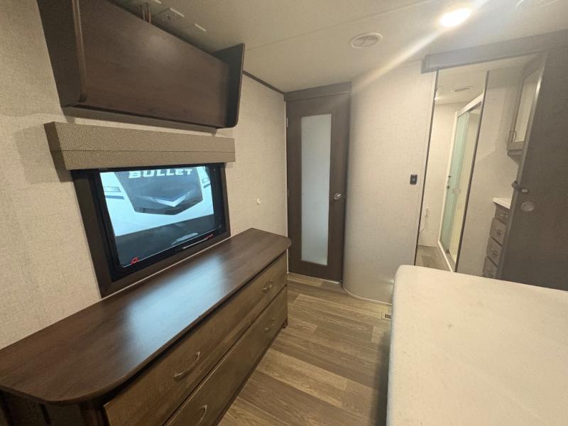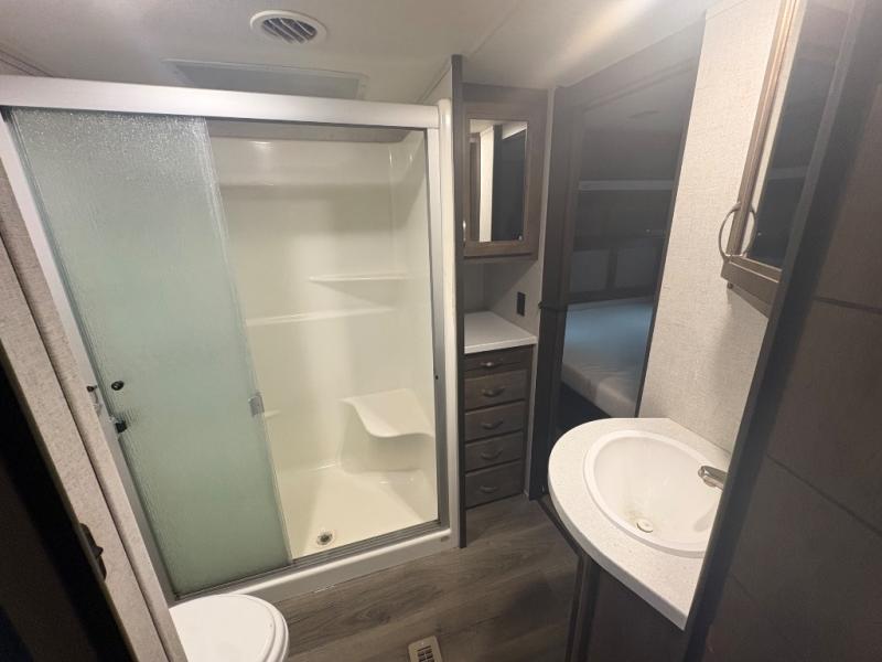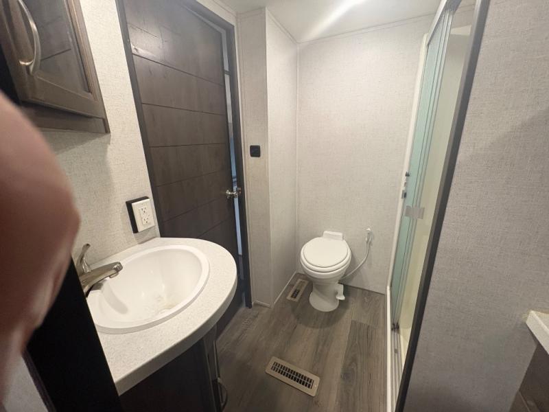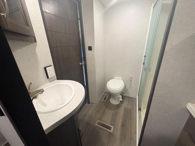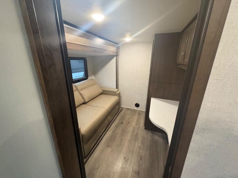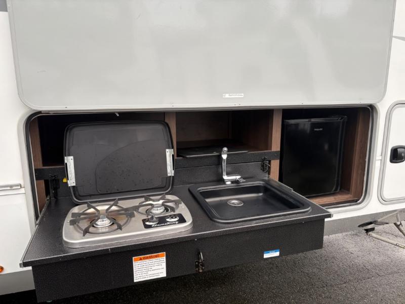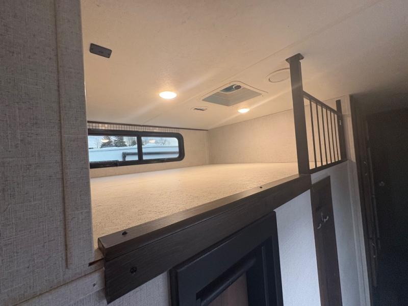 Need an RV with an extra room to be utilized as an office, a man cave or even a bedroom for overnight guests? This Open Range model will have you excited about working while traveling. The main living and kitchen area is spacious with plenty of seating to watch the LED TV or visit with other campers. The free standing dinette offers four chairs that can be moved around if needed in another area. The entrance to the extra room allows you to grab a drink from the refrigerator, and inside you will find a desk, storage and a sofa that can become extra sleeping space. The loft area which is across from the main entrance provides more sleeping space or a place to store a few larger camping items or totes. Don't forget about cooking outside on the outdoor kitchen while enjoying the weather and your camping friends. There is more to see, take a step inside after looking around the exterior!