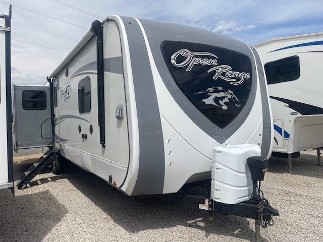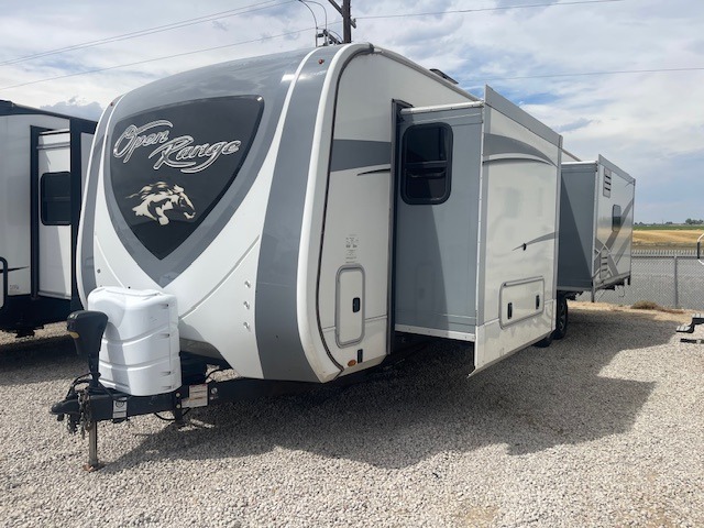 The Highland Ridge RV Open Range is designed for extended use during any season. Each travel trailer offers inside style and comfort such as stainless steel appliances, hardwood cabinet doors, ball bearing full extension drawer guides, as well as a USB/12V charging port that charges your portable electronics even when you are not hooked up to a power source. You will also appreciate the power tongue jack making it easy to set up during the day or night with the LED lights. Choose your favorite model today!