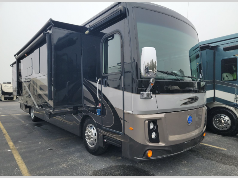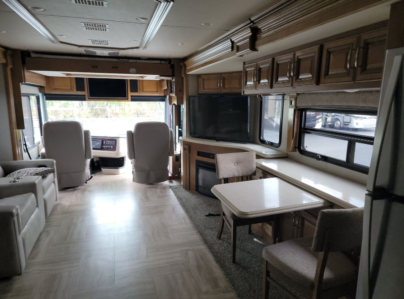 Whether you have a trip that will take you across the country or to your favorite vacation spot you will want a Holiday Rambler Navigator. These models have a Freightliner XCM Series chassis and a Cummins ISB 6.7L engine with a 340hp to ensure dependability when on the path less traveled. Along the exterior you will find durable features like the aerodynamic fiberglass cap with automotive headlights, a TPO roof, and dual pane large dark tinted frameless windows. You will also enjoy functional features like the 100 gallon fuel tank, the impressive exterior pass-through storage, and the on-demand water heater. Inside there are plenty of comforts throughout such as the Magnadyne M-10 10" touch screen stereo with navigation, a 19 cu. ft. stainless steel residential refrigerator, and an electric fireplace, plus a king Encore Series memory foam mattress with an adjustable head. Let a luxury Holiday Rambler Navigator class A diesel motorhome be your home on wheels where the scenery changes but the comforts from inside stay the same!