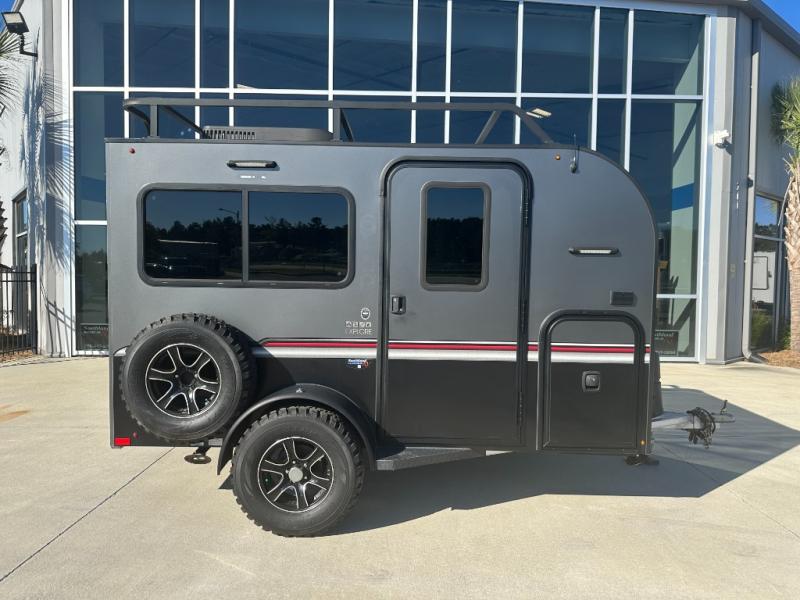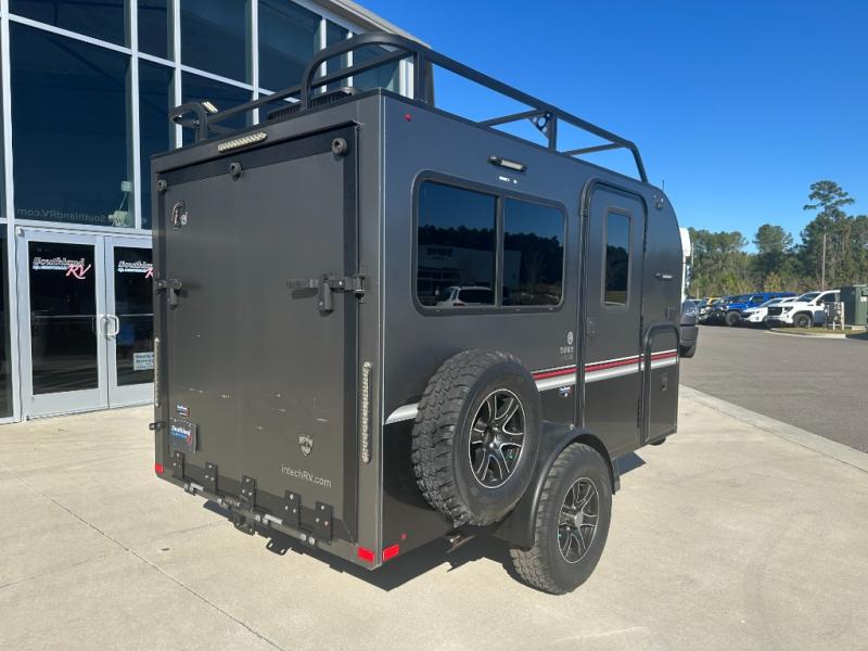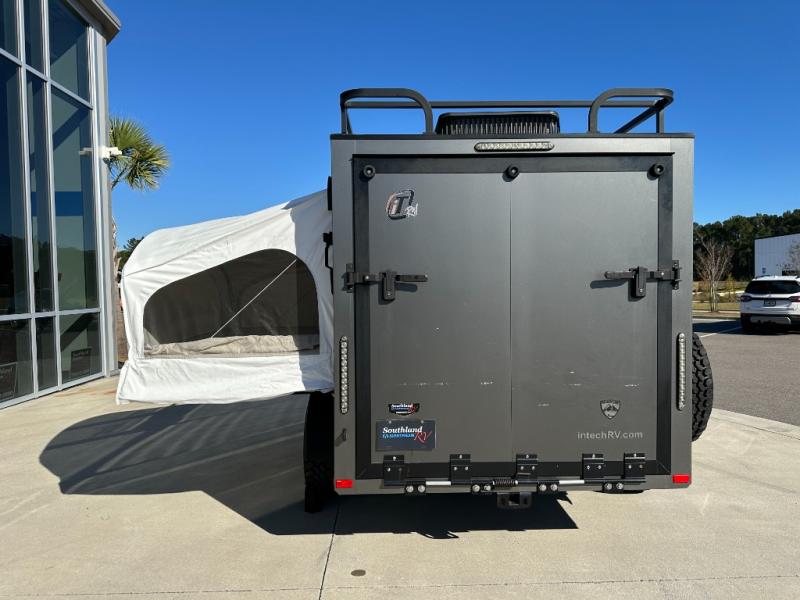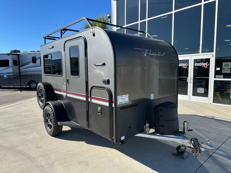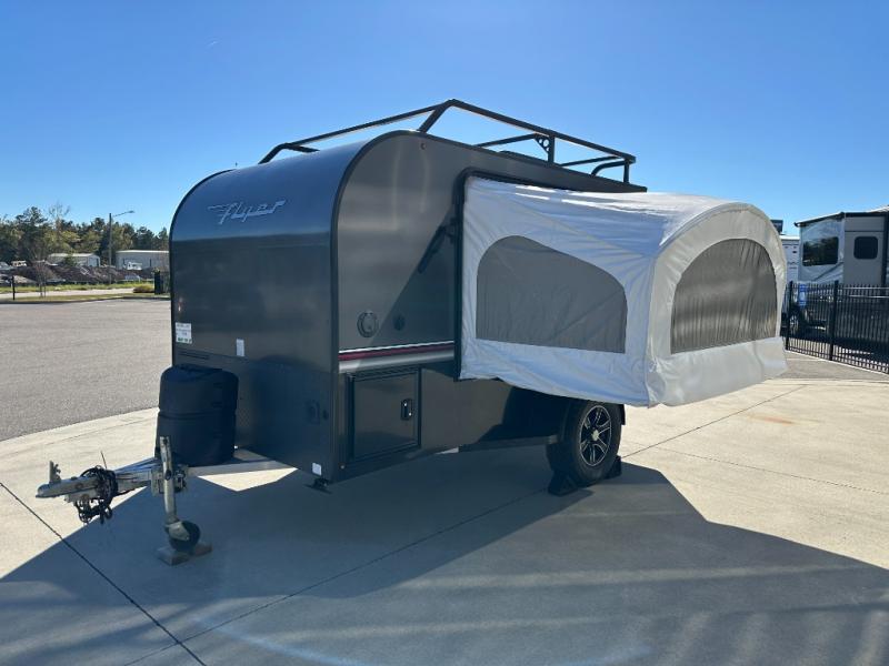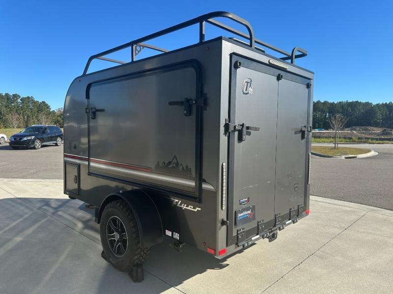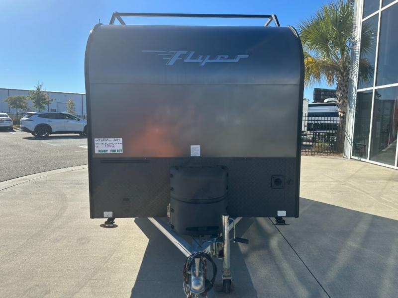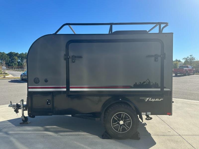 The inTech RV Flyer travel trailers and toy haulers are ready for adventure whenever you are! With the all-aluminum, all-tube cage frame, the Flyer has been built with lightweight and long-lasting materials so that you can enjoy your unit for many, many years. The Flyer has a rugged design so that you can confidently explore new territory and go where traditional RVs cannot. The Flyer has a 2" rear receiver rated for 175 pounds which allows you to bring along your bikes, and the front tongue box is the perfect solution for your storage needs because it is easily accessible and out of the interior. The Flyer also comes with a Bluetooth stereo that has two speakers so that you can always have your best music playing, and the list of optional features is going to entice you to make your Flyer even more exceptional. The optional roof rack will allow you to bring along kayaks, and the optional A/C with heat is definitely going to be tempting to add.