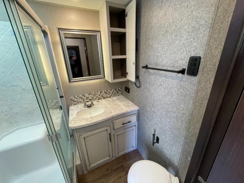 With modern styling and innovative design, the Jayco Eagle boasts an upgraded travel experience for everyone! Each Eagle offers StrongholdVBL exterior walls, a Magnum Truss roof system which is the strongest roof in the industry, and Climate Shield zero-degree-tested weather protection so that you can consistently enjoy four seasons of traveling. The industry-exclusive HELIX cooling system provides you with a "Whisper Quiet" 15,000 BTU A/C unit, as well as a Jayco-exclusive insulated duct design. As an industry first, Jayco is proud to include preparations for rooftop and ground solar panels by Go Power® in every Eagle, and the Keyed Alike™ lock system will ensure that you are in complete control of everything you have stored in the enormous pass-through storage compartment.