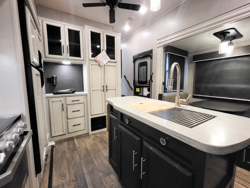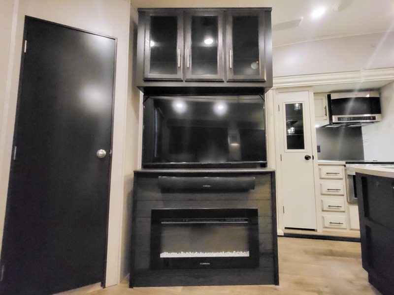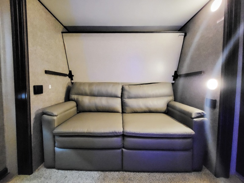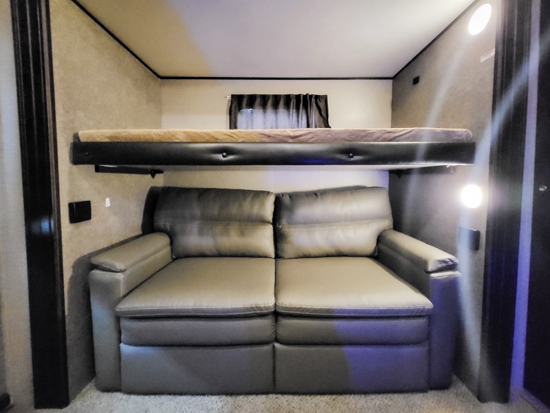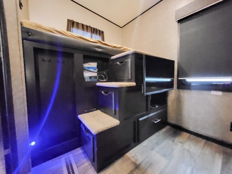 If you like to travel in luxury with your entire family, then check out this Eagle fifth wheel! Because this unit comes with a half bath, a set of gamer chairs, and two bunk beds in the rear private bunkhouse, you have plenty of room to sleep six people comfortably each night. The large closet and the slide out queen bed in the front private bedroom add to this unit's accommodating features. You will also find the central living area to be exceptionally wonderful as you gather everyone for a late-night movie on the LED HDTV and lounge in one of the dual recliners, and on those chilly evenings, nothing will feel better than grabbing a cup of hot chocolate and warming up in front of the LED fireplace!