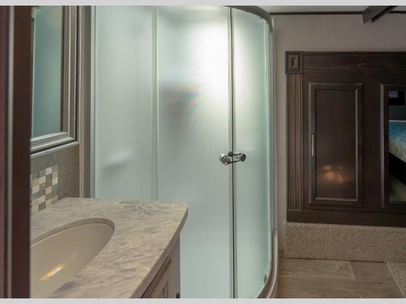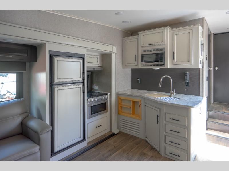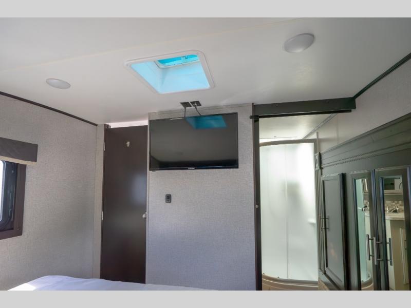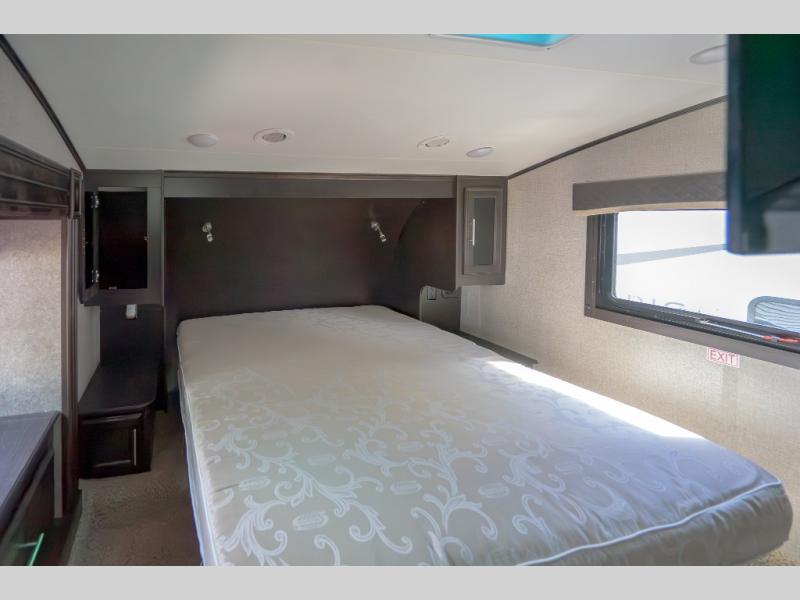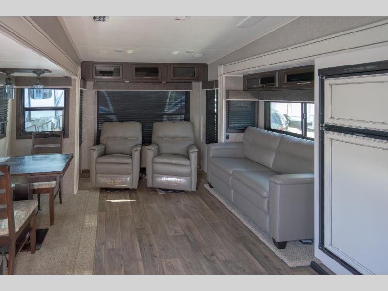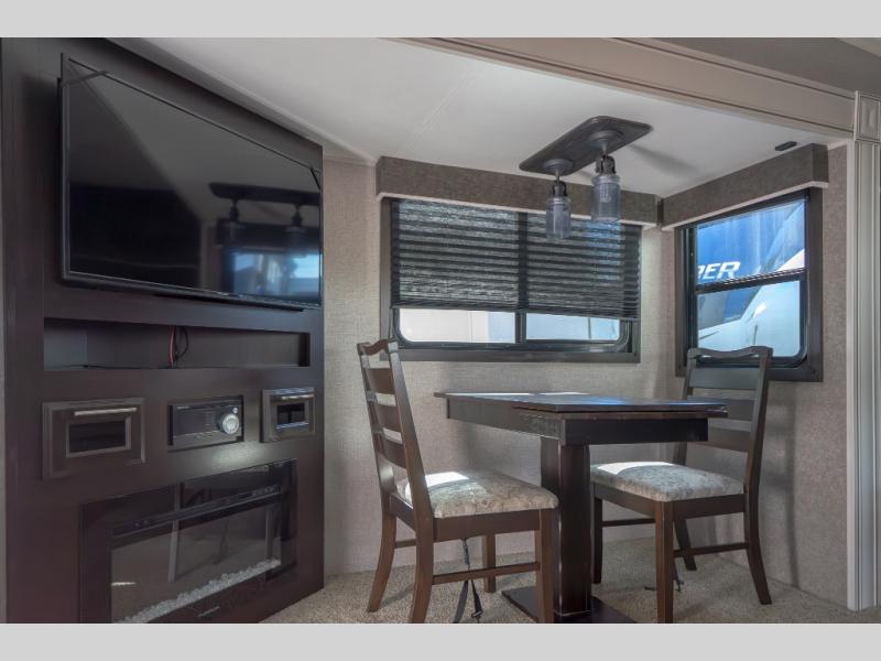 For any camping trip you will want an Eagle HT fifth wheel by Jayco. Along the exterior there is a high-gloss, fiberglass front cap with built-in specialty LED lighting. Inside each model there are handcrafted glazed drawers and Shaw residential carpet with R2X stain guard plus IVC Trekk wood-plank vinyl flooring. The industry exclusive HELIX cooling system is an added bonus with Jayco-exclusive insulated duct design, directional and closeable A/C vents, larger return air vents, and the exterior-mounted 15,000 BTU Whisper quiet A/C unit. The Customer Value Package includes a residential queen Simmons mattress with under-bed storage, an electric patio awning with integrated LED lights, MORyde CRE 3000 rubberized suspension for a smoother ride, a rain proof EZ Breeze bathroom power vent, an industry first Go Power rooftop and ground solar prep, plus so much more!