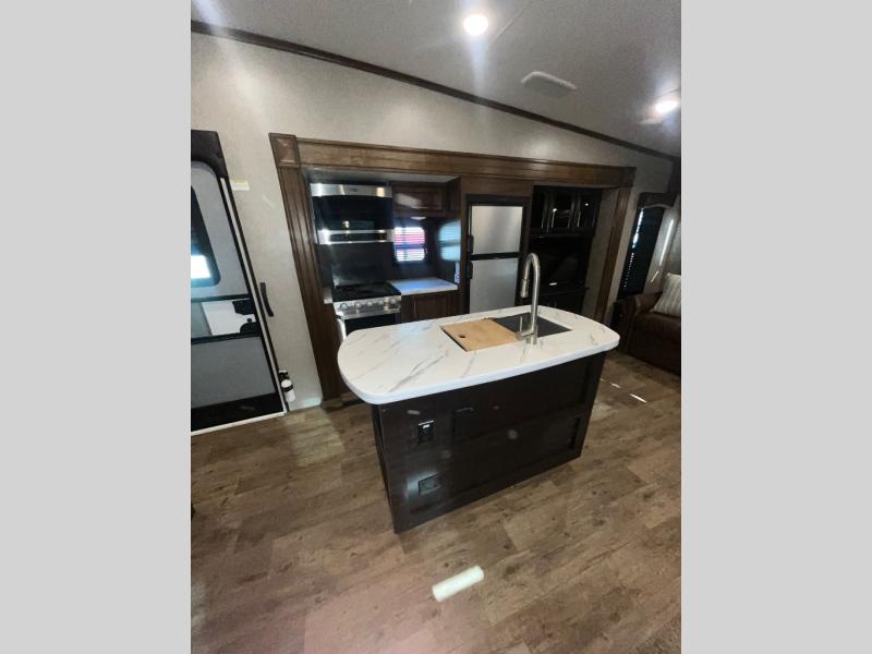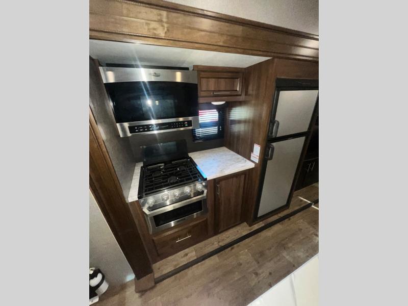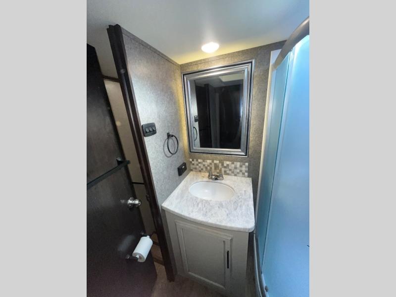 If you desire a weekend getaway, but still want the luxuries of home then look no further because this Jayco Eagle HT 28RSX fifth wheel is just what you need! It features an entertainment center that has plenty of seating options with the theater sofa and tri-fold sofa with end tables to hold your beverage of choice. The kitchen island provides extra storage and counter space to make meal prep a breeze. The double entry bath gives you an easier access from the front private bedroom. Keep the nights alive by socializing underneath the 14' electric awning with LED lights!