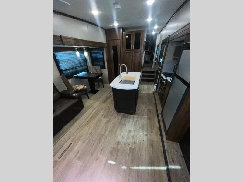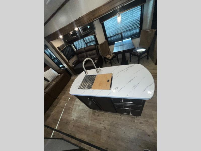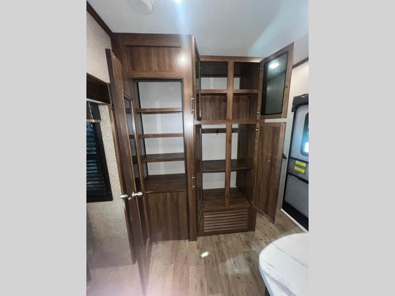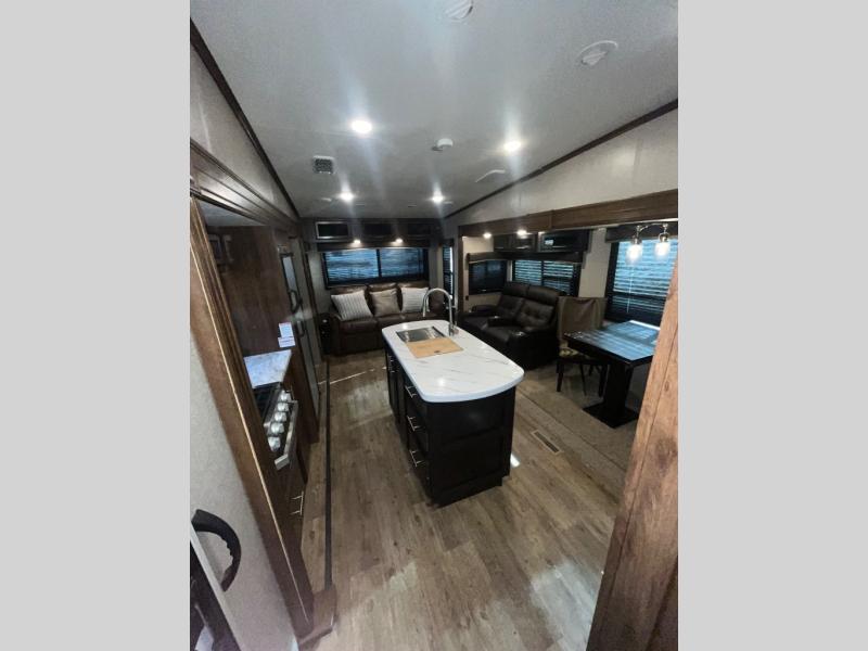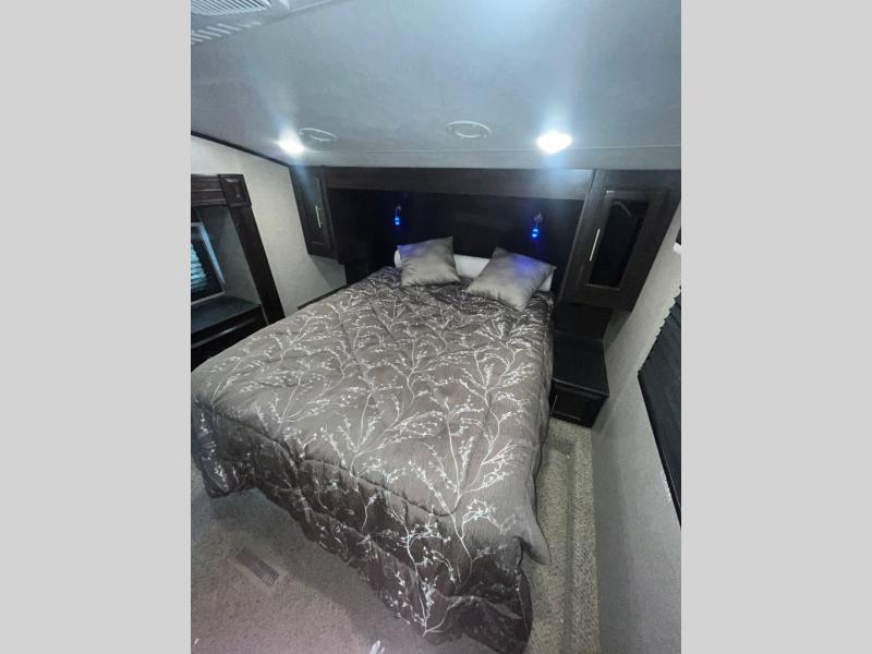 For any camping trip you will want an Eagle HT fifth wheel by Jayco. Along the exterior there is a high-gloss, fiberglass front cap with built-in specialty LED lighting. Inside each model there are handcrafted Sugar Maple glazed drawers. Throughout each model there is Shaw residential carpet with a sound dampening carpet pad plus IVC Trekk wood-plank vinyl flooring. The industry exclusive HELIX cooling system is an added bonus with the Jayco-exclusive insulated duct design, directional and closeable A/C vents, larger return air vents, and the exterior-mounted 15,000-BTU Whisper Quiet A/C unit. The Customer Value Package includes a residential queen Simmons mattress with under-bed storage, an electric patio awning with integrated LED lights, MOR/ryde CRE/3000 rubberized suspension for a smoother ride, a rain proof EZ Breeze bathroom power vent, an industry first Go Power rooftop and ground solar prep, and so much more!
