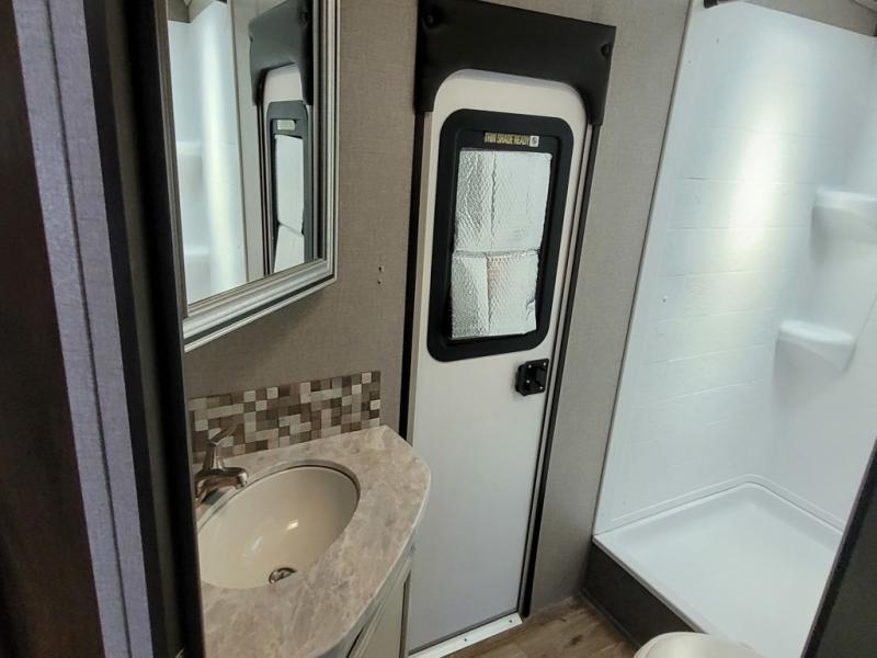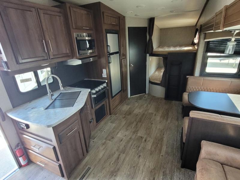 When you're ready for an adventure of a lifetime step inside this Jayco Eagle HTX 26BHX fifth wheel! It features a set of double bed bunks in the rear that your kiddos are sure to love, and you will love having a front private bedroom to escape the chaos. You won't need to worry about any run-ins thanks to the double entry doors promoting a smooth flow of traffic in and out of the unit. When you're ready to wind down the night, head to the entertainment center and lay back on the tri-fold sofa. You can even add the optional fireplace to complete the ultimate relaxing atmosphere!
