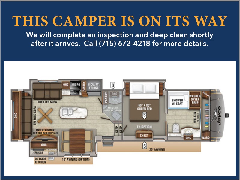 With modern styling and innovative design, the Jayco Eagle boasts an upgraded travel experience for everyone! Each Eagle offers StrongholdVBL exterior walls, a Magnum Truss roof system which is the strongest roof in the industry, and Climate Shield zero-degree-tested weather protection so that you can consistently enjoy four seasons of traveling. The industry-exclusive HELIX cooling system provides you with a "Whisper Quiet" 15,000 BTU A/C unit, as well as a Jayco-exclusive insulated duct design. As an industry first, Jayco is proud to include preparations for rooftop and ground solar panels by Go Power® in every Eagle, and the Keyed Alike™ lock system will ensure that you are in complete control of everything you have stored in the enormous pass-through storage compartment.
