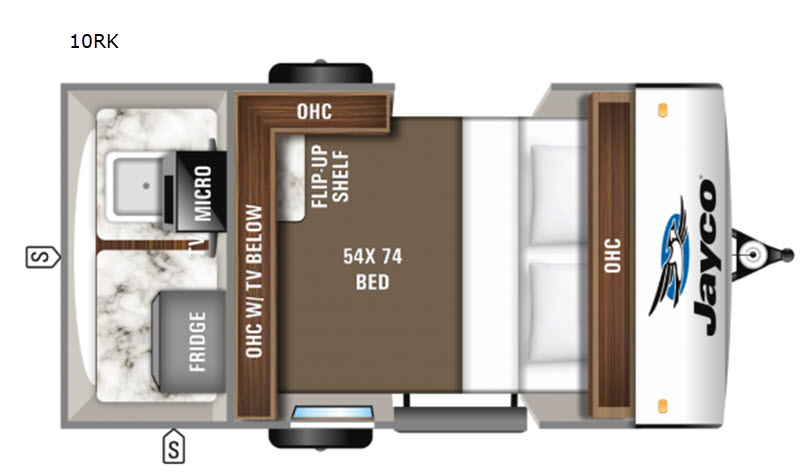 Image the flexibility of being able to camp anywhere and at anytime. Now you can easily do so with this Jayco Hummingbird 10RK travel trailer. After you are done playing outdoors then come relax on the full sized bed. There is a convenient two way 12V/110V LED TV and a refrigerator for your perishables. The kitchen is located outside along the rear of this model and you'll enjoy two marine grade exterior speakers so you can cook dinner with the music up!