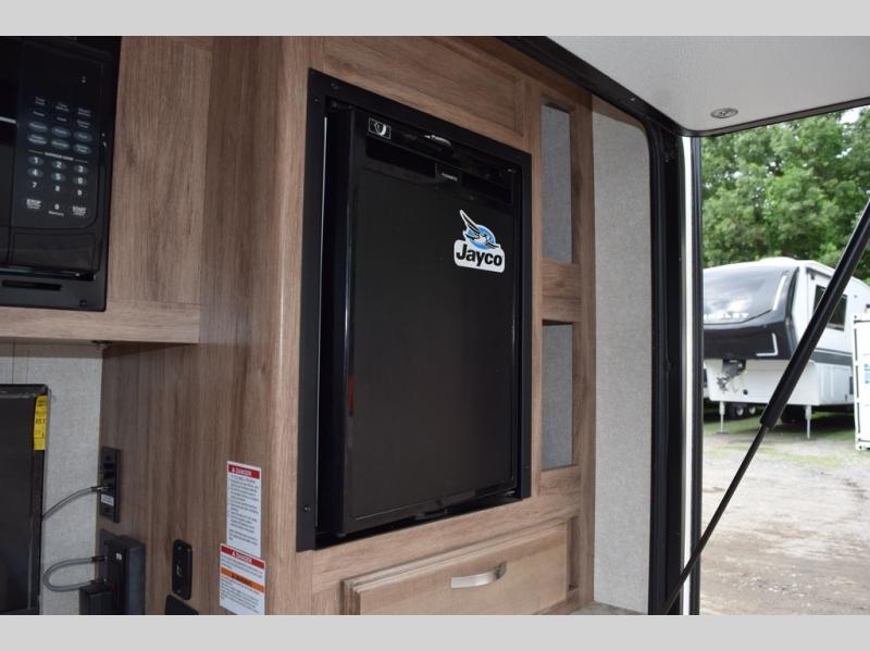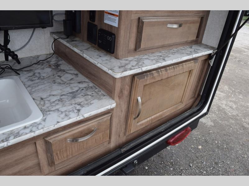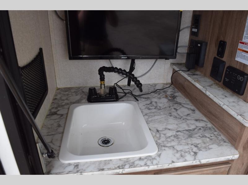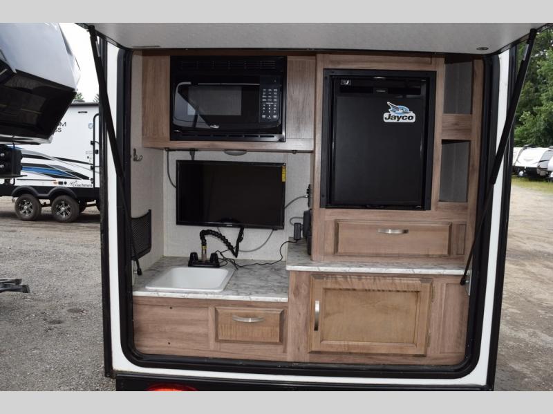 Image the flexibility of being able to camp anywhere and at anytime. Now you can easily do so with this Jayco Hummingbird 10RK travel trailer. After you are done playing outdoors then come relax on the full sized bed. There is a convenient two way 12V/110V LED TV and a refrigerator for your perishables. The kitchen is located outside along the rear of this model and you'll enjoy two marine grade exterior speakers so you can cook dinner with the music up!