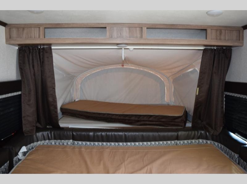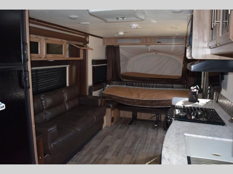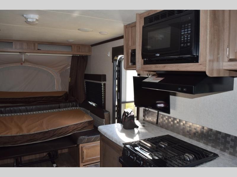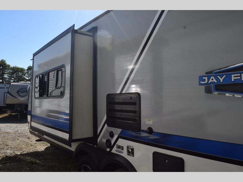 When you choose a Jay Feather expandable you can rest assured that you have chosen quality construction with features such as an aerodynamic, rounded front profile with front diamond plate plus there are vacuum-bonded, laminated bed platforms with reverse-cambered support of 1,000-lb. capacity, plus water-repellent, scratch-resistant Jayco DuraTek vinyl tent material with zipper windows. Inside you will find full kitchen amenities, LED lighting throughout, and ball-bearing drawer glides with 75-lb. capacity. The mandatory Customer Value Package includes features such as American-made nitro-filled Goodyear radial tires with self-adjusting brakes, a power awning with LED lights, an outside shower, plus AM/FM/CD/DVD/Bluetooth stereo and more! For your next camping trip, come choose a Jay Feather expandable!