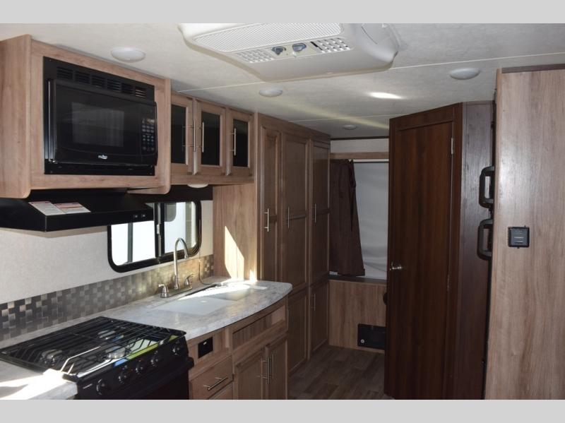 Come see how your family will fit perfectly in this Jay Feather expandable X23B. With the front and rear tent end beds open and the slide pushed out, you will be amazed at how much room everyone can enjoy. After cooking your meals on the three burner cooktop, you can dine around the large U-shaped dinette and sofa or outside under the awning. This model also features a rear corner bath for a bit more privacy. Take a step inside, you will be glad you did.