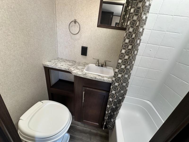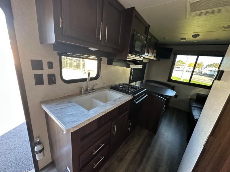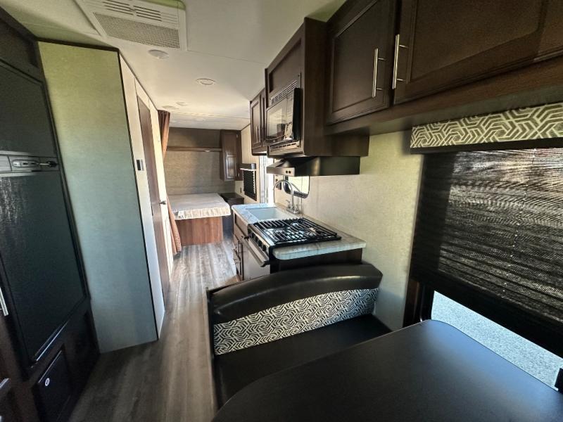 Imagine camping with your spouse at a local state park or your RV favorite destination. Now imagine relaxing on a queen bed, getting cleaned up in the full bath, and making meals in the kitchen. This Jay Flight 21QB even offers a dinette to play games, dine, or visit, or choose the sofa to read a book and relax. You have everything you need for comfortable traveling, and enjoying the great outdoors!