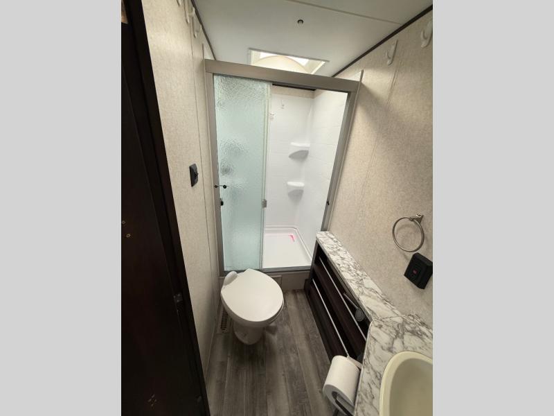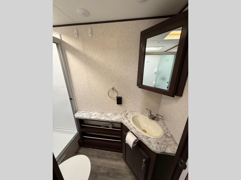 It's time to enjoy all your camping trips with your family in this travel trailer. The kiddos will enjoy their own double size bunk beds while you rest in the master bedroom on the opposite side. You can meet in the middle to play games and eat meals together on the U-shaped dinette or sofa. The rear bathroom is conveniently beside the bunks, as well as the main entry door. The second entry in the master bedroom allows the parents to sneak out for a walk in the morning while the others sleep in after staying up late. If you want to start breakfast outside on the outdoor kitchen, that works also. It's time to start planning your next trip!