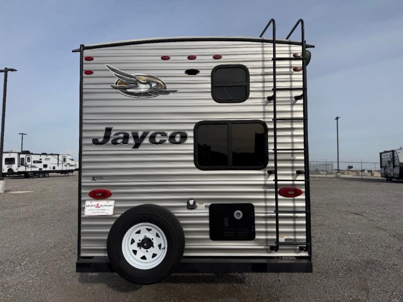 With any Jayco Jay Flight travel trailer you will get solid construction from the fully integrated A-frame, the l-class cambered structural steel l-beams, and the Magnum Truss roof system with seamless DiFlex II material. The 30" x 72" main entrance door, the keyed alike entrance and baggage doors, the exclusive JaySmart lighting system, and the Goodyear tires offer safety and security you will want every where you travel and setup. It's time to find out what else the Jay Flight has to offer that you can't travel without. Choose your favorite model today!